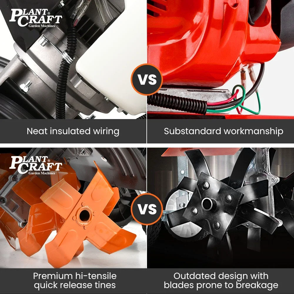 Introducing the Titan 9 from Plantcraft. This 2-in-1 Cultivator and Tiller combination sets itself apart from the many unreliable entry-level models on the market with premium components that offer the easy starting, power, manoeuvrability and longevity that you deserve.