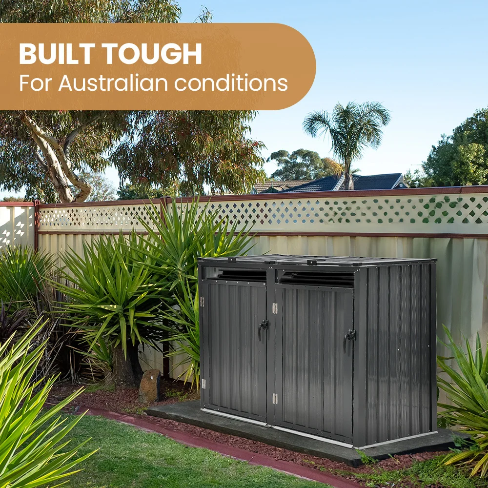 Meet the PlantCraft Garbage Bin Shed: your new solution for discrete bin storage that enhances your home's curb appeal. Constructed from galvanised steel, it offers durability and easy upkeep.