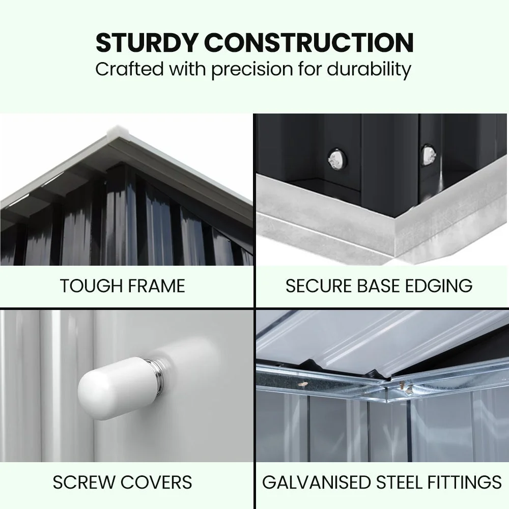 The skillion roof design effectively channels water away, keeping the entrance dry. The sliding doors offer smooth operation and include lockable handles, providing an option to secure your belongings (lock not included).