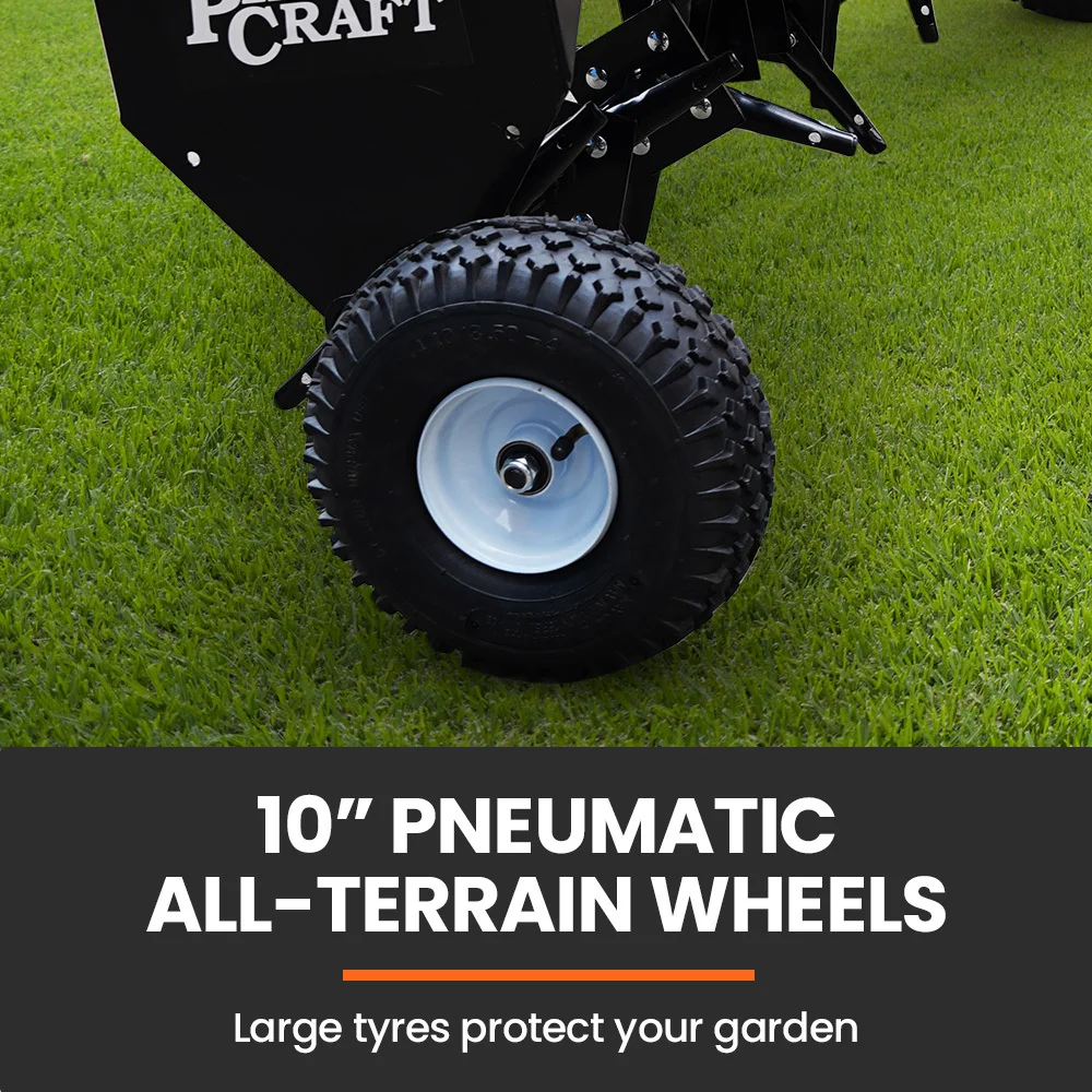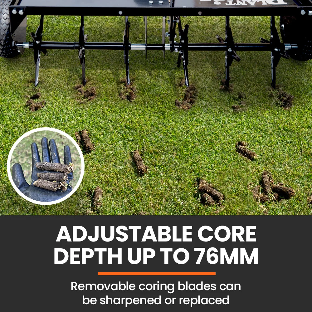 This PlantCraft Tow Behind Lawn Plug Aerator is an exceptional piece of garden equipment. This reliable time saving machine has a rugged steel frame with a rust-resistant powder coat finish. This lawn aerator roller has a plug depth of up to 3 (76mm) to improve a lawns water and fertiliser absorption at the root layer, while the wide 10 pneumatic tyres protect the turf. You can get the job done quickly too, as it's rated to be towed at speeds of up to 8km/h.