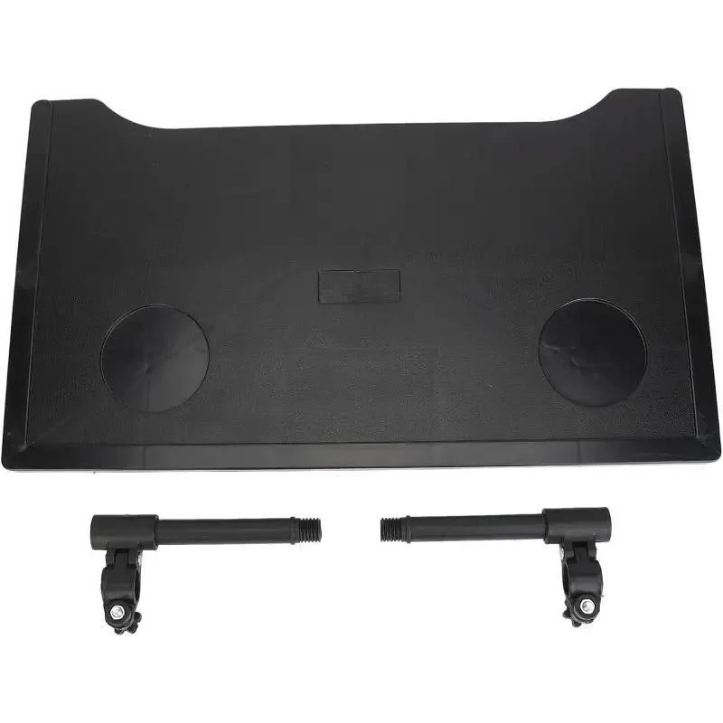This plastic dining table tray is specifically designed to provide convenience and support for wheelchair users, the elderly, and individuals with mobility aids. The tray features two stable cup holders to keep beverages secure, a textured surface to prevent items from sliding, and a reinforced back panel for added strength. Its spacious design ensures ample room for meals, utensils, and drinks, offering a comfortable and practical dining solution. Easy to attach to wheelchairs, walkers, or mobility scooters, this tray enhances independence and comfort during meal times.