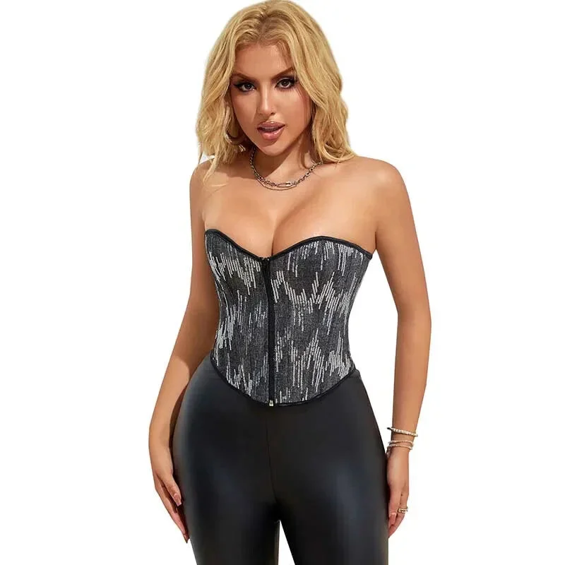 Black Leather Plus Size Corset Slimming S-6Xl Bustier With Lace-Up Boning And Pleated Design - Black - 6Xl