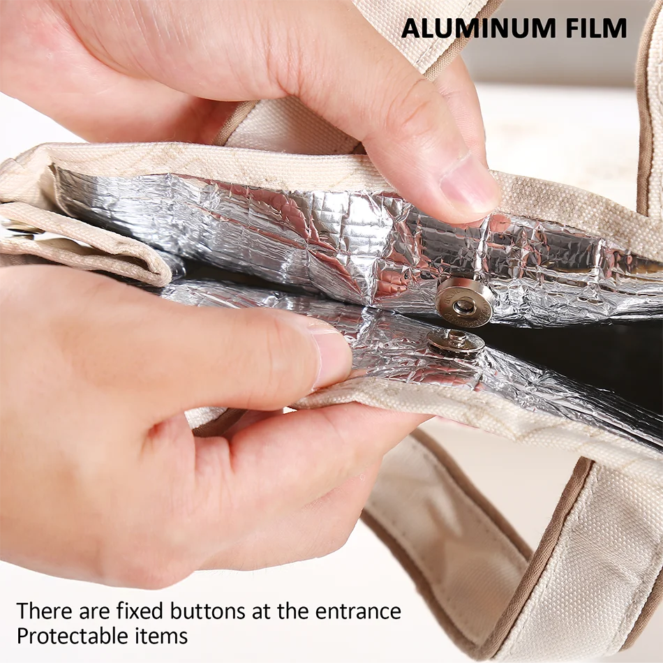 The edge of the bento bag is designed with a magnetic buckle, which double guarantees the storage safety.