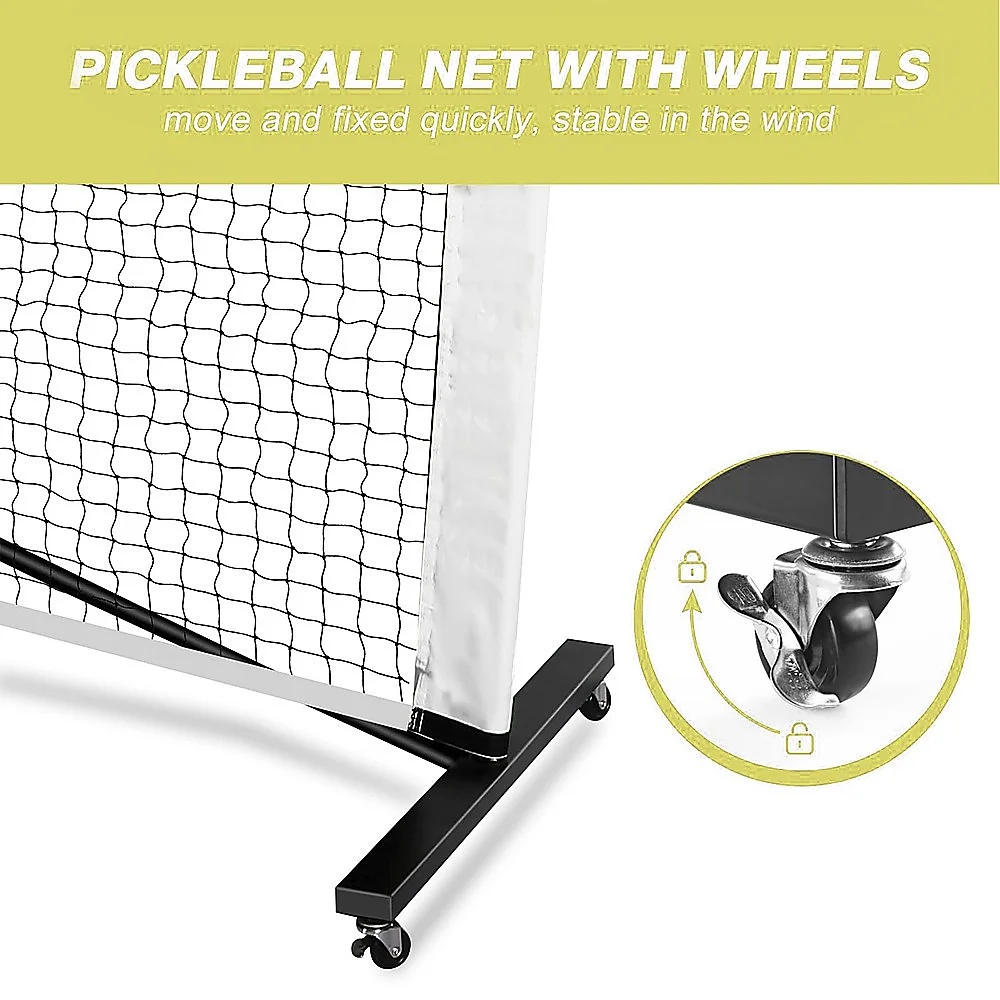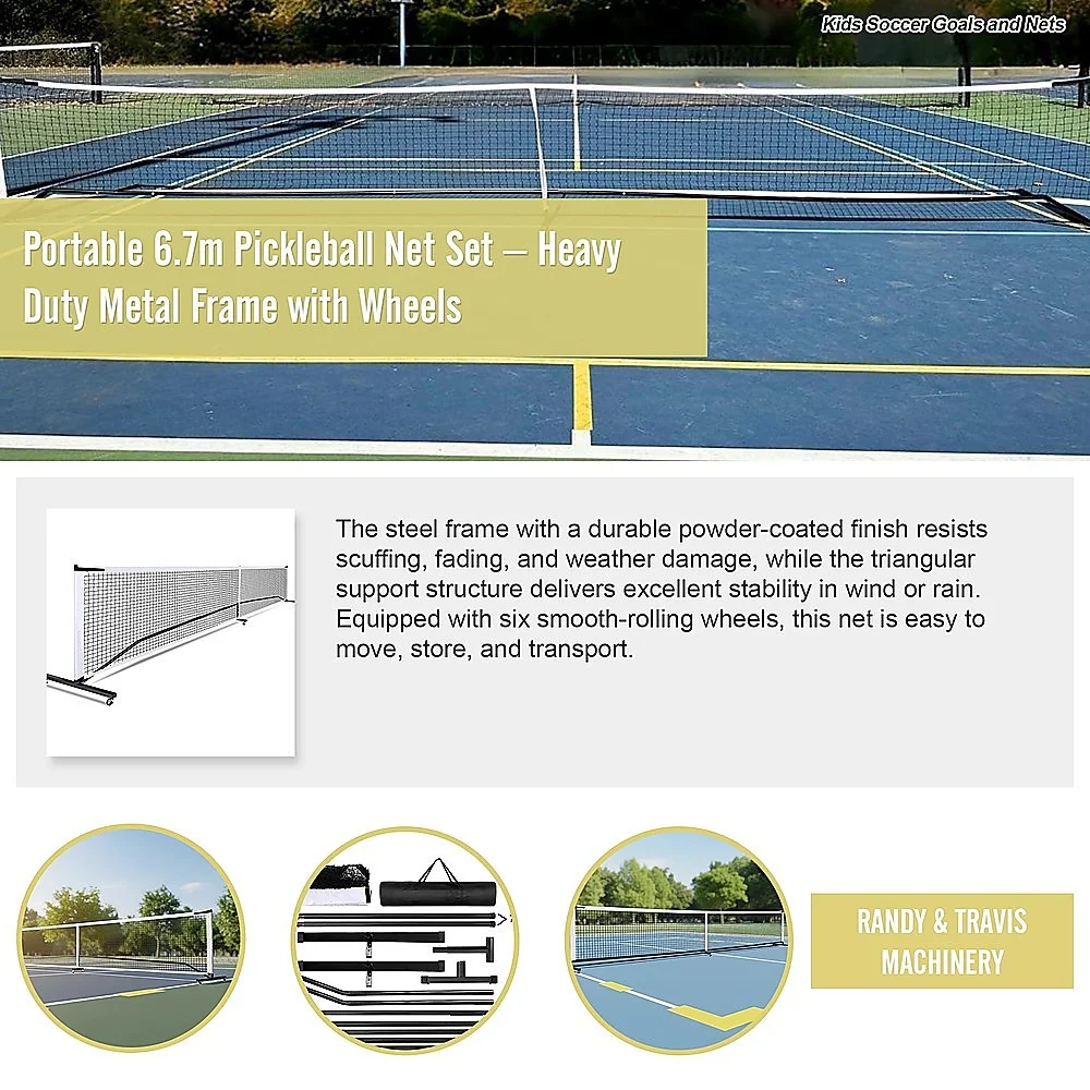 The steel frame with a durable powder-coated finish resists scuffing, fading, and weather damage, while the triangular support structure delivers excellent stability in wind or rain. Equipped with six smooth-rolling wheels, this net is easy to move, store, and transport.