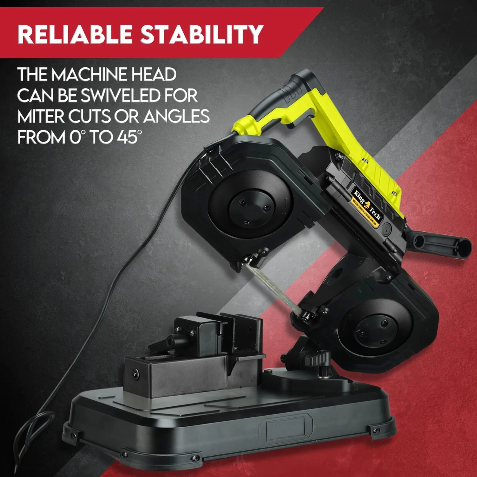 The KingTech 1200W 2-in-1 Portable Band Saw gives you the best of both worlds – portability for quick site jobs and a solid metal stand for precise workshop cuts. With its variable-speed motor and swivel head up to 45°, you can tackle everything from mild steel to alloy with clean, burr-free results. Built with a heavy-duty frame and solid stand mount, this saw holds its line and keeps vibration low even under load. Whether you’re cutting pipe, flat bar or square tube, this compact workhorse delivers accuracy, control and serious cutting power for any trade job.