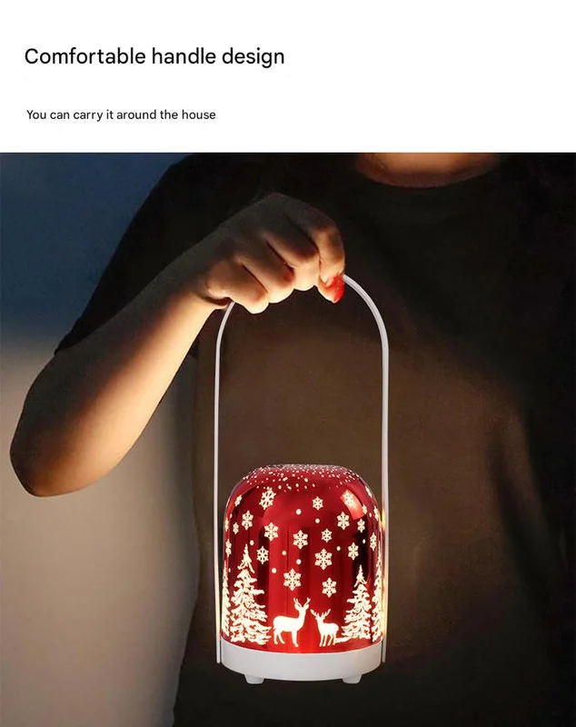 Create a warm and festive atmosphere with this elegant Portable Christmas LED Lantern. Designed with a beautiful holiday pattern, this lamp serves as both a functional light source and a charming decorative piece. It features healthy, soft, and non-glaring light, perfect for any room. Customize your ambiance with three adjustable color temperatures (warm, white, neutral) and stepless dimming to achieve the perfect brightness for any occasion. The light also has a memory function, retaining your last setting when turned back on. With an extra-long battery life from its large 5200mAh capacity and a convenient Type-C charging port, this lantern is built for endurance. Its comfortable handheld design allows you to carry it anywhere, making it ideal for adding a festive touch to your home, patio, or holiday gatherings.