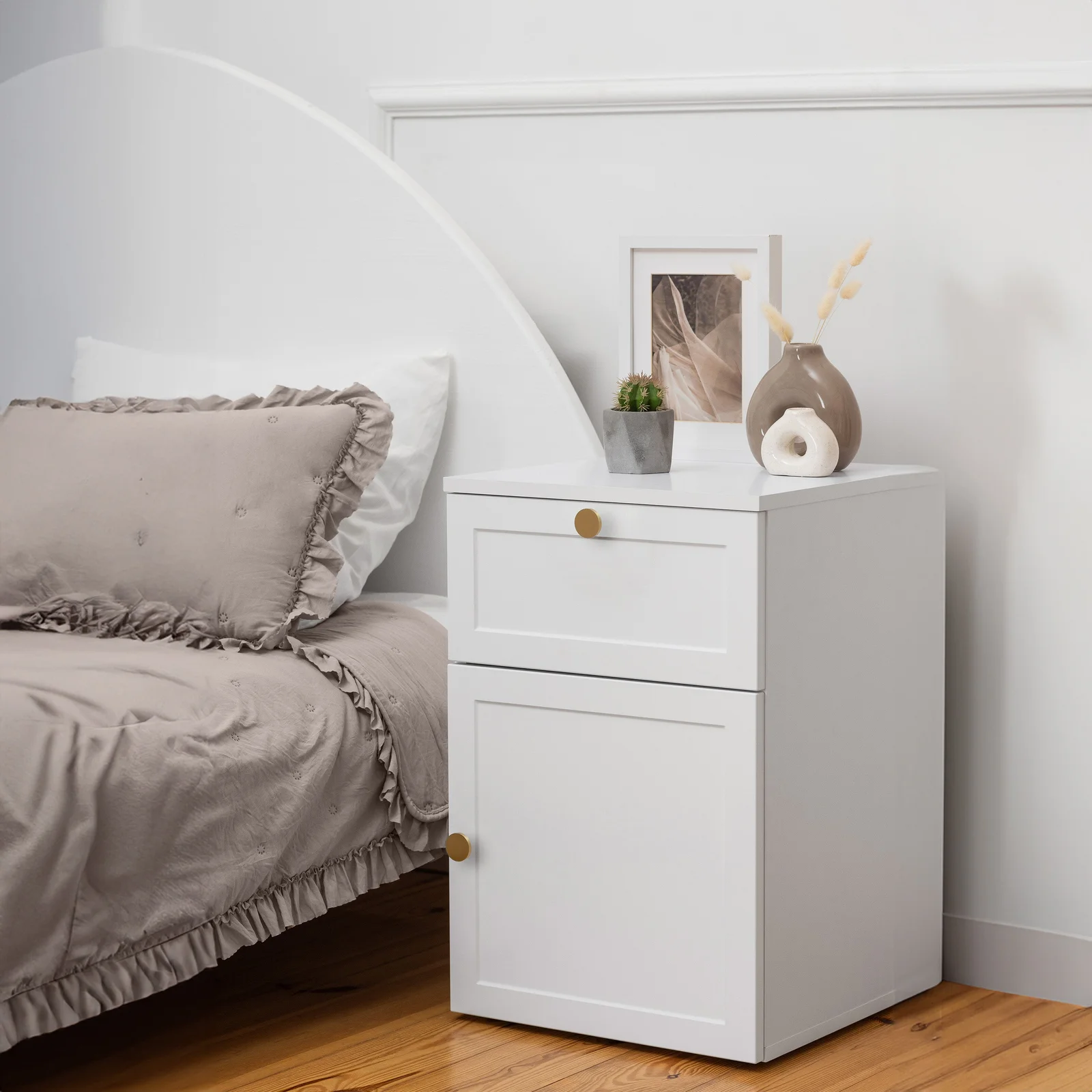 PORTO BEDSIDE TABLE - WHITE - VJ PANEL - PULL BLACK