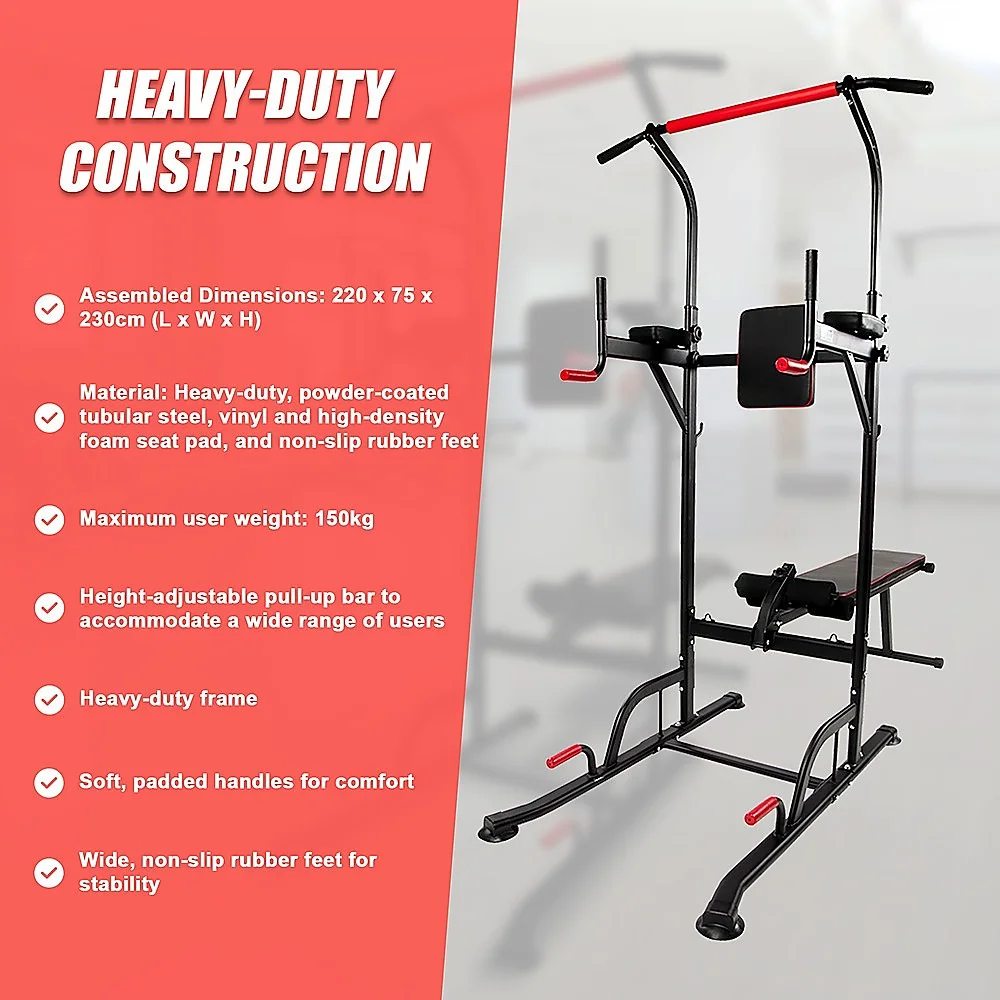 Make every muscle in your body perform at its best with a wide range of exercises, including pull-ups and push-ups, dips, bench presses, dumbbell rows, crunches, leg raises, and many more your imagination is your only limit. Exercise in total comfort with its adjustable height, thick cushioning, and soft, padded handles.