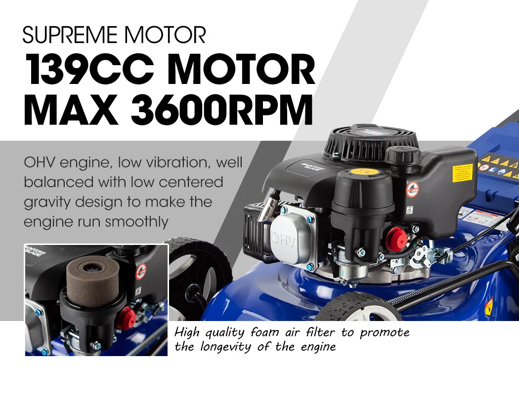 The Powerblade V450 boasts an effortlessly powerful 139cc air-cooled, 4-stroke OHV engine, that slices through the toughest buffalo with ease.