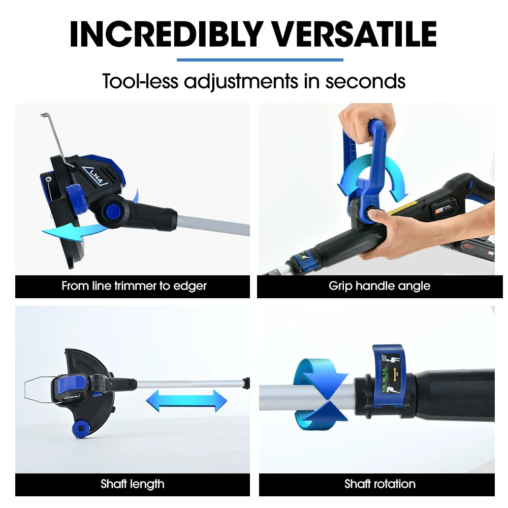 Engineered for comfort and precision, the LN4 is incredibly lightweight at just 2.5kg. Its ergonomic soft-grip handle with an integrated throttle, adjustable angle grip handle, and quick-adjust shaft length ensure maximum control and ease of use.