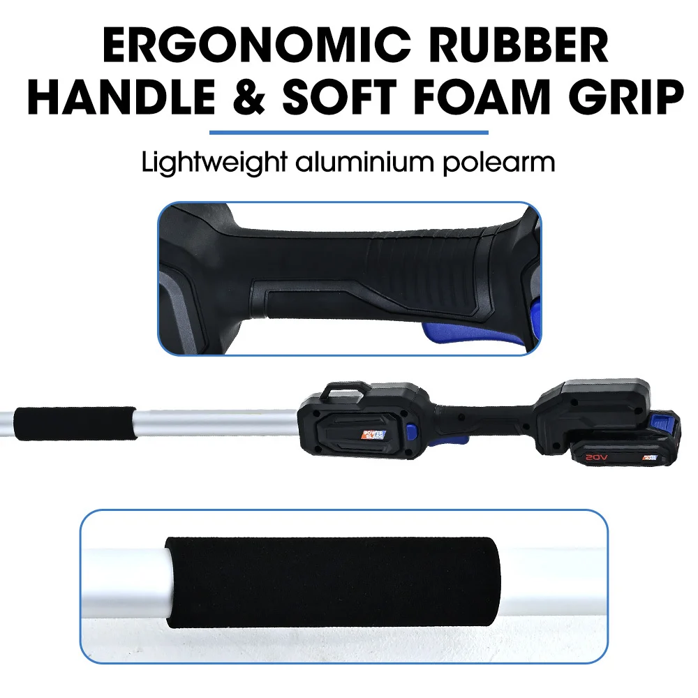 Designed for Comfort and Precision, the SW7 Pole Saw is remarkably lightweight at just 3kg, with a soft-grip handle that reduces fatigue and ensures easy maneuverability during extended use. The telescopic pole adjusts effortlessly between 138cm-175cm, making it perfect for reaching high branches of up to 3m. A retractable chain guard adapts to branch size for added safety and ease, capable of cutting branches up to 4 inches in diameter. When used as a mini chainsaw, the SW7 weighs a mere 1.6kg, offering exceptional control for tackling hard-to-reach areas.