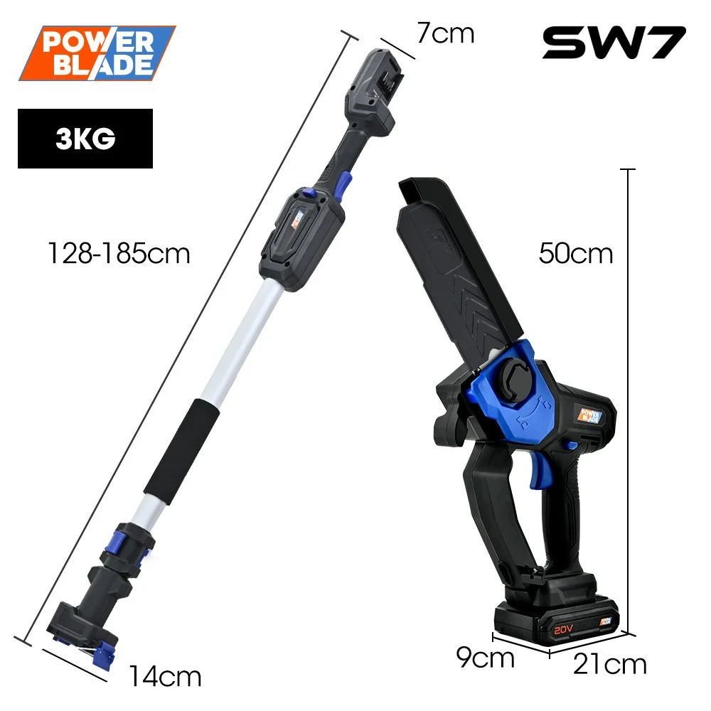 The versatile Powerblade SW7 effortlessly transforms from a Mini Chainsaw to a Pole Saw, empowering you to tackle a wide range of outdoor tasks with ease. Powered by a 20V Lithium-Ion Battery, it combines cordless convenience with reliable powerfree from fumes, excessive noise, or the frustration of difficult starts.