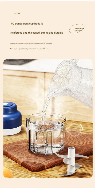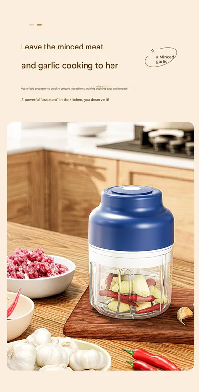 Simplify your kitchen prep with our compact and powerful cordless mini food chopper. This versatile kitchen gadget is your perfect assistant for quickly mincing garlic, meat, vegetables, nuts, and more. With its one-touch pulse control, you can effortlessly control the texture of your ingredients, from coarse to fine, in just 10 seconds. The chopper's portable, USB-rechargeable design, combined with a long-lasting battery, makes it an indispensable tool for preparing baby food, condiments, dumpling fillings, and more, making your kitchen tasks easier and more efficient.