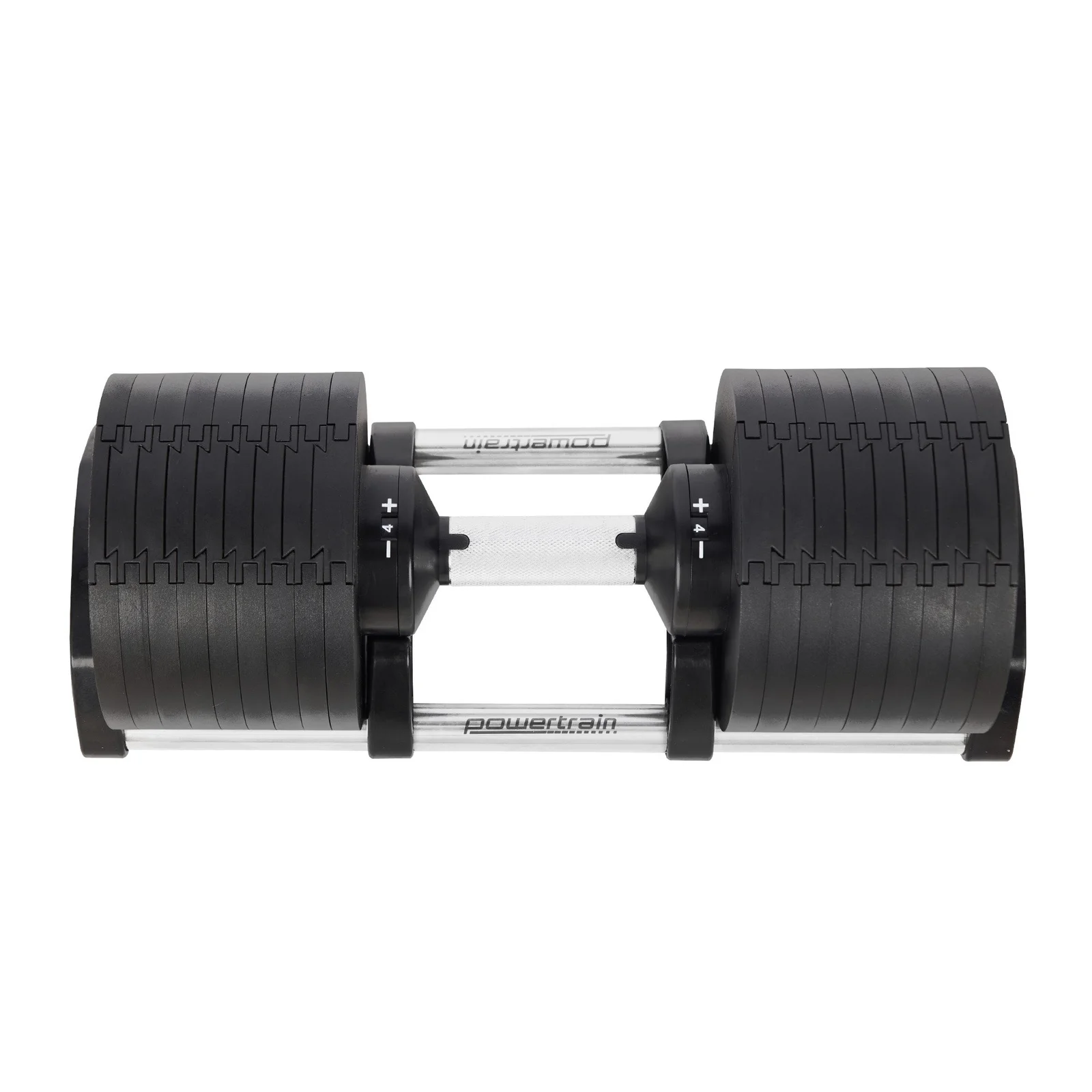 Take your strength training to the next level with this Powertrain set of two adjustable dumbbells. Each dumbbell allows you to effortlessly switch between weights ranging from 4kg to 36kg in precise 4kg increments. Thanks to the one-hand adjustment handle, transitioning between exercises is seamless and efficient.