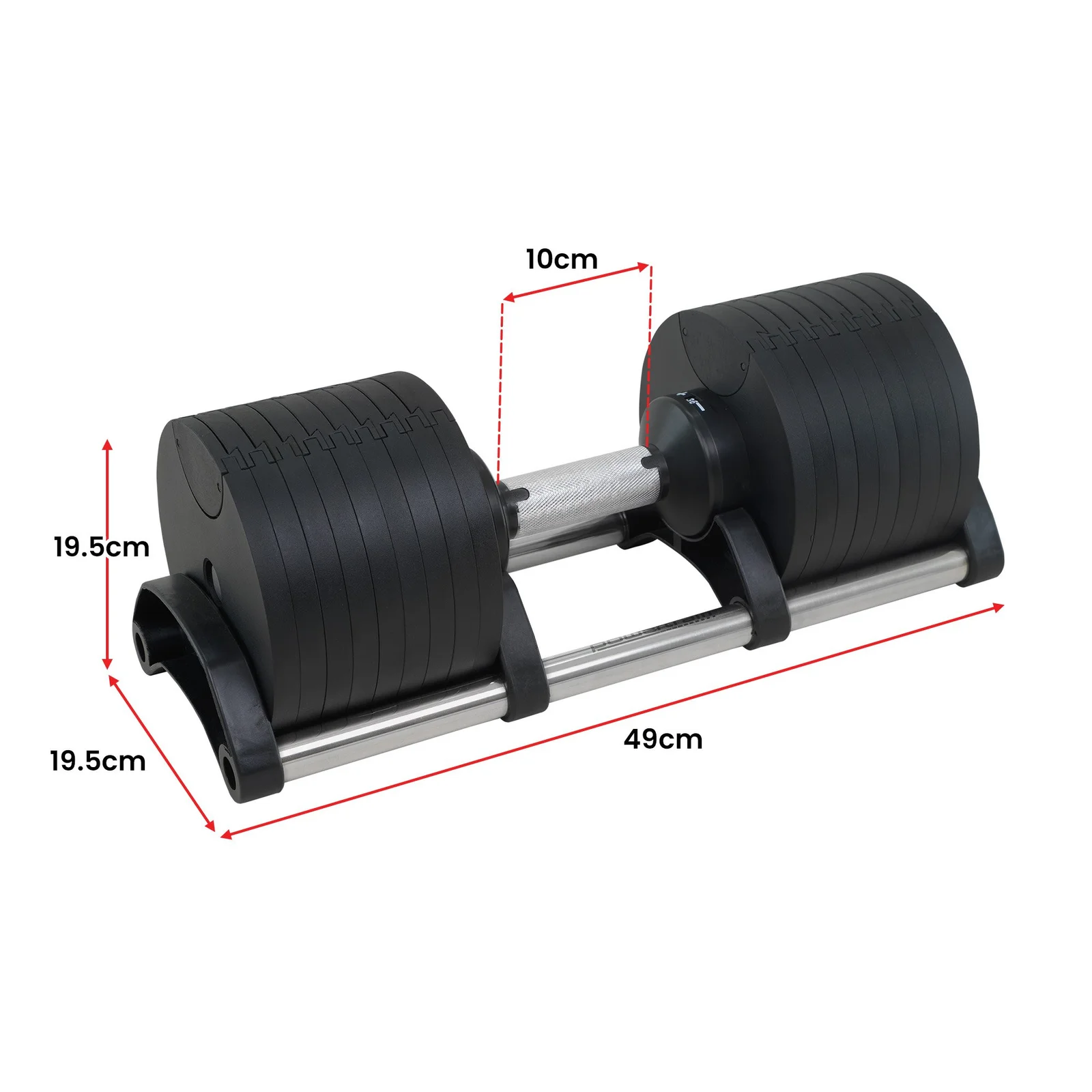 - Dimensions per Dumbbell (L x W x H): 49cm x 19.5cm x 19.5cm