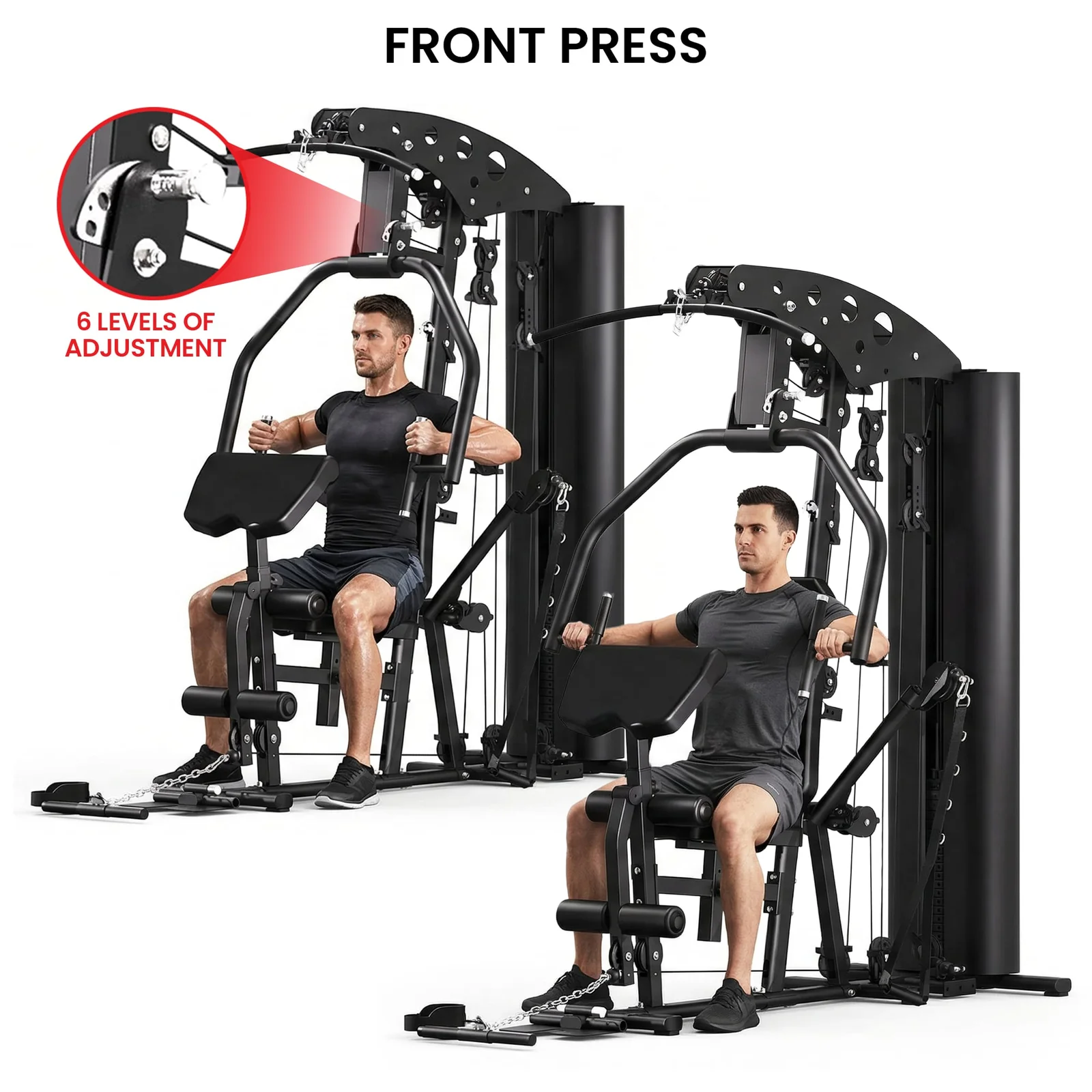 - Accessories: Short Bar, Ankle Straps, Single Strap and Triceps Rope