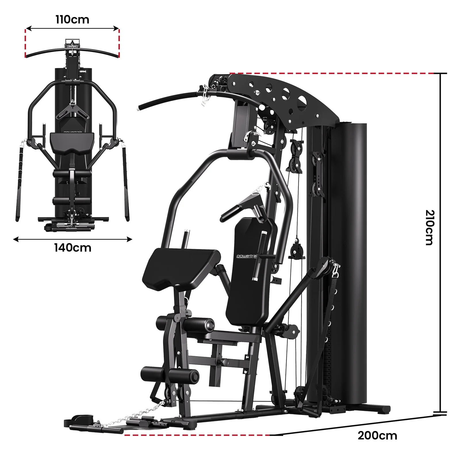 Covering upper and lower body exercises, it offers extensive workouts including seated press, shoulder press, lat pulldown, seated row, preacher curl, leg extension, leg press, cable fly and upright row. The 90kg cast iron weight stack ensures smooth, consistent resistance, while quiet cables make your sessions seamless. Built with a heavy duty steel frame and complete with short bar, triceps rope, ankle straps and single strap, it’s a compact powerhouse for serious home fitness.