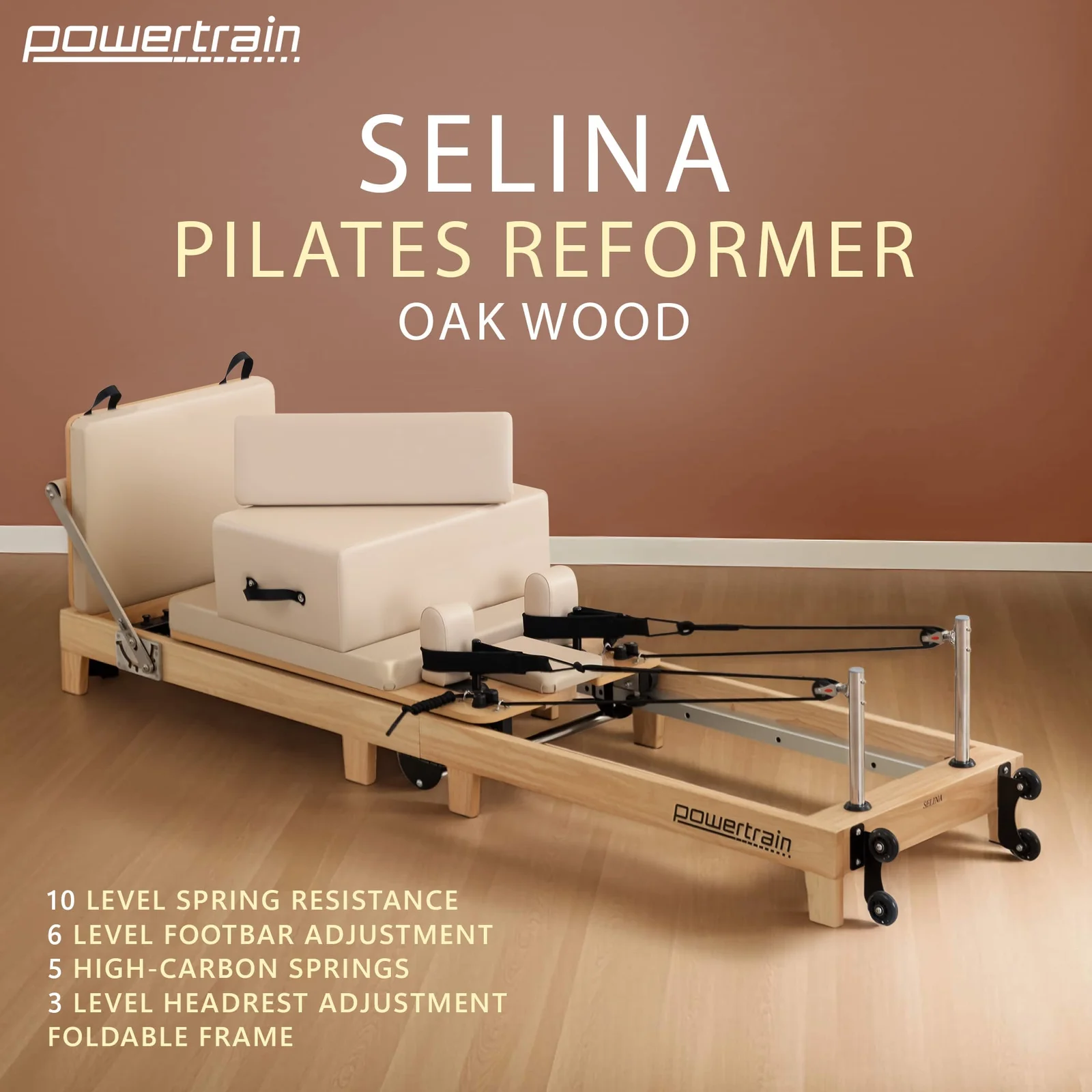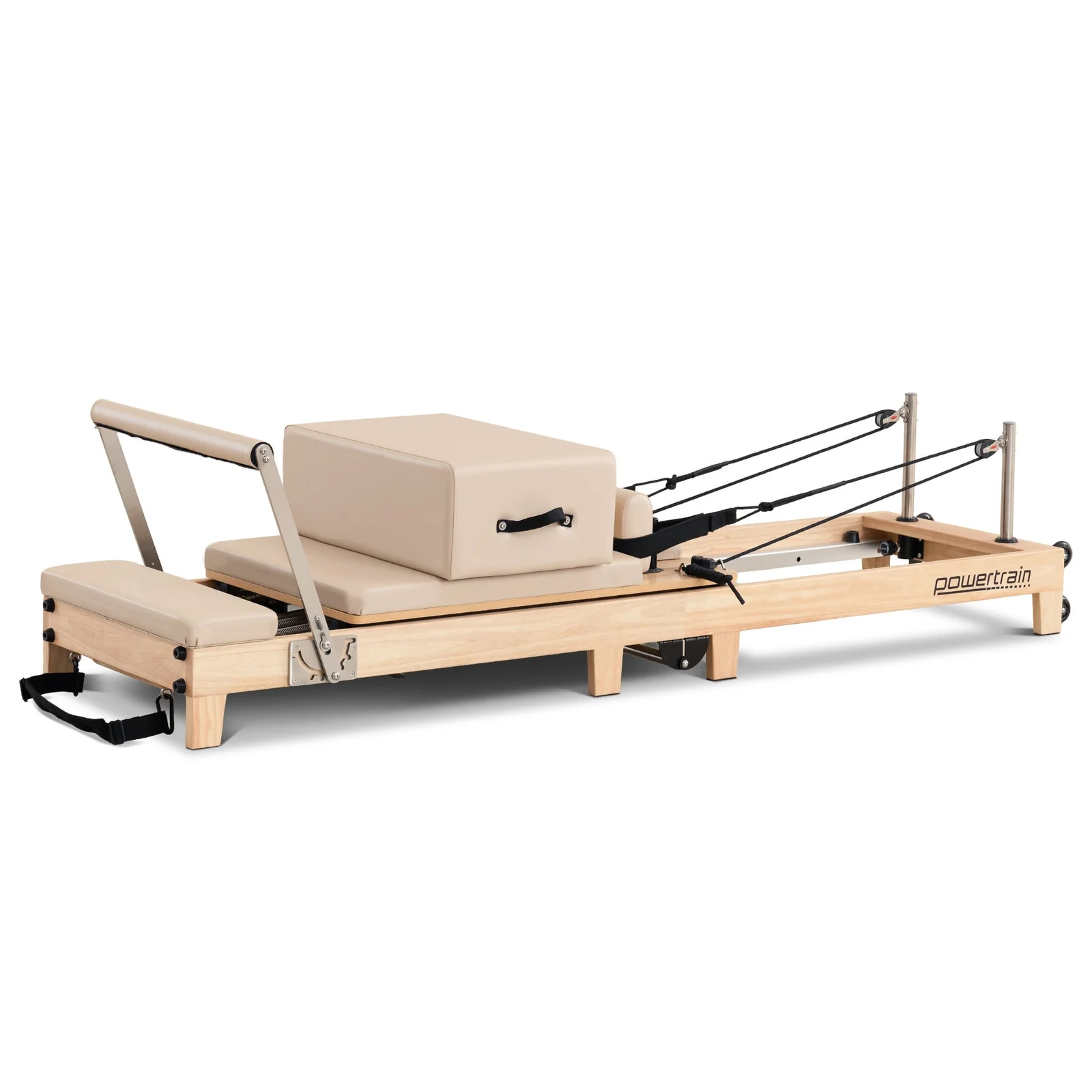 Powertrain Selina Pilates Reformer Machine Wooden Folding Multifunctional Home Gym Equipment with Jumpboard & Sitting Box Oak Beige