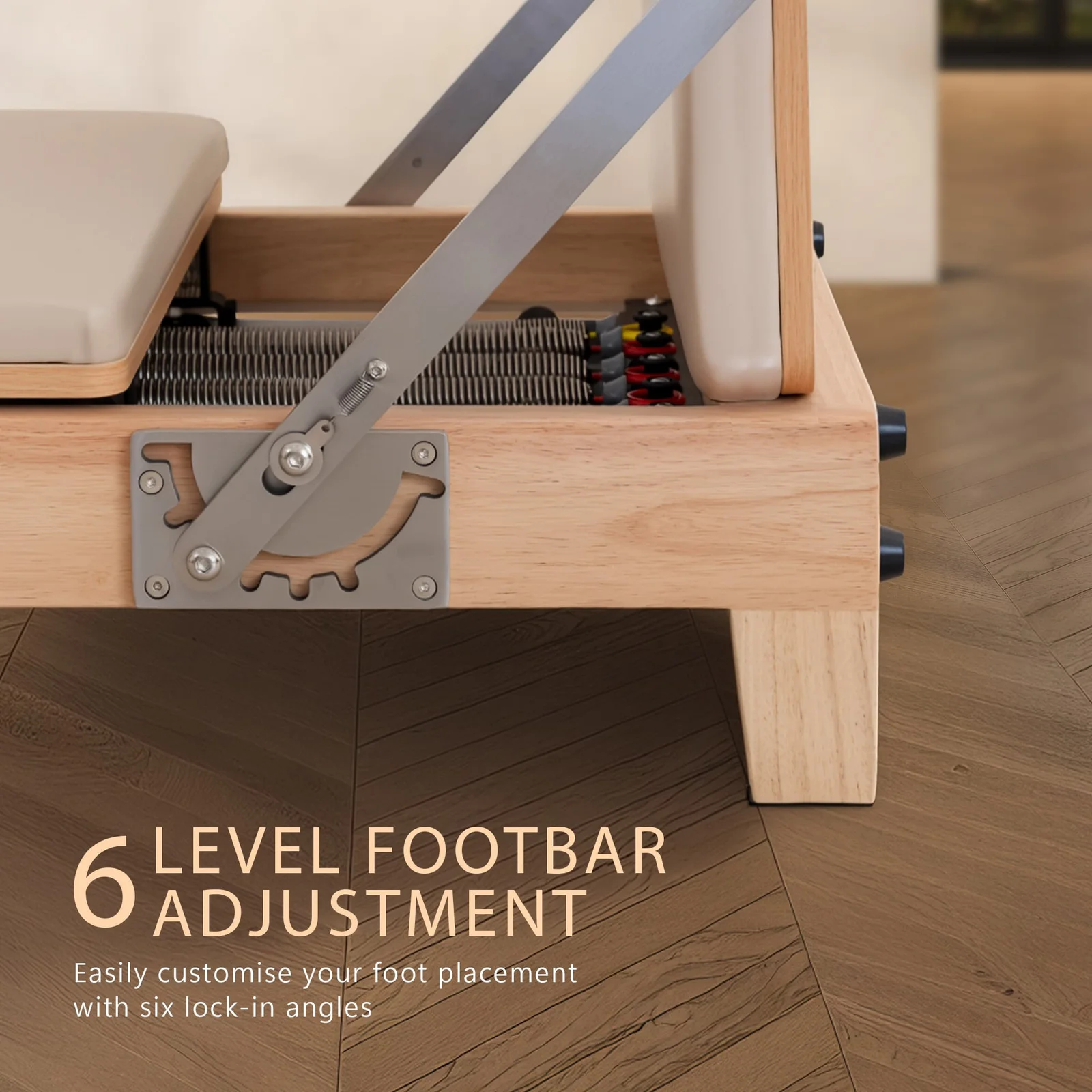 The headrest and shoulder rest feature three-level adjustments to support proper alignment throughout your workout. Whether you're stretching, toning or building strength, this reformer delivers a full-body challenge with comfort and control. Perfect for dedicated Pilates lovers seeking a premium experience without sacrificing space or silence in their home setup.
