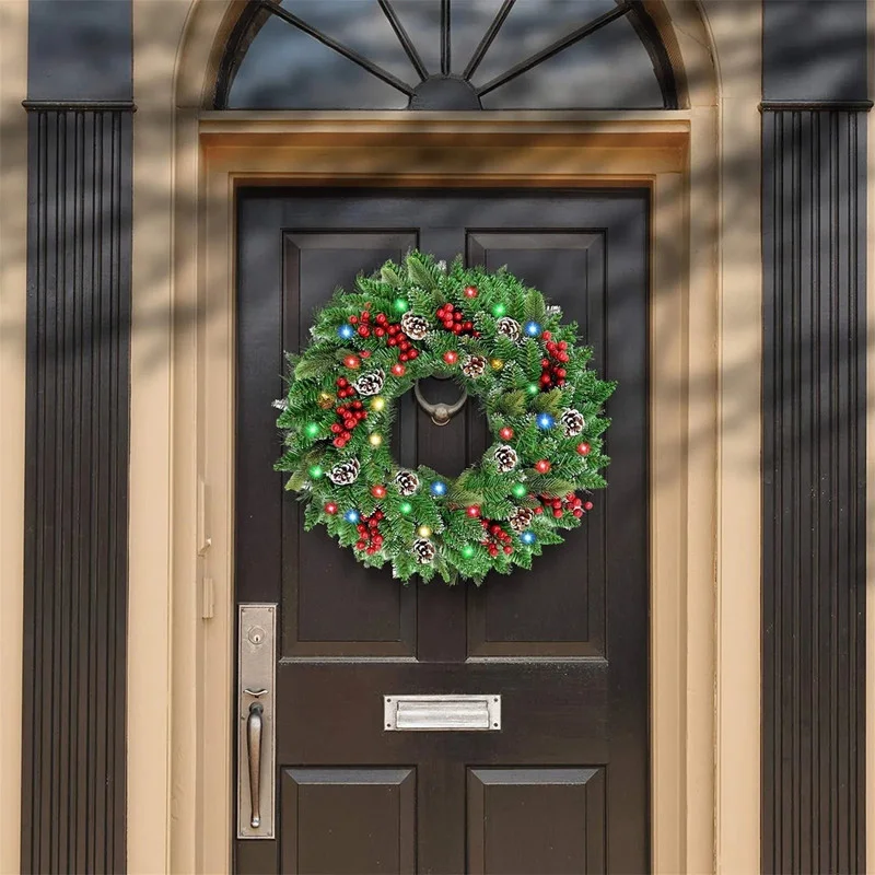 Pre-Lit Christmas Door Wreath LED Decor