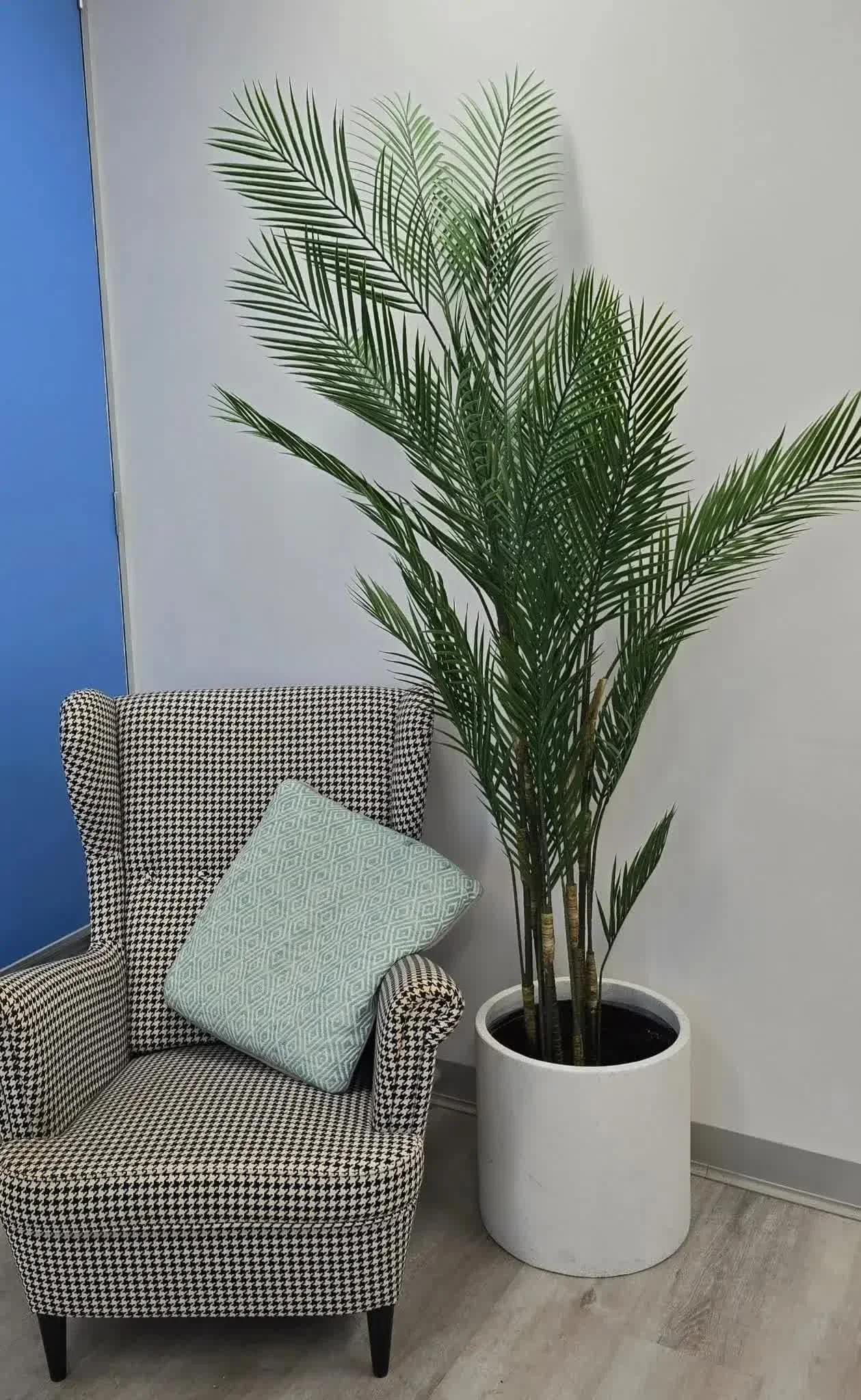 Whether you want to enhance a patio, reception area, living room, or poolside deck, this statement piece brings instant greenery and elegance. Say goodbye to watering, pruning, or messy fallen leaves this palm offers a maintenance-free solution that lasts year after year.