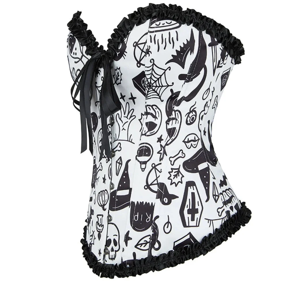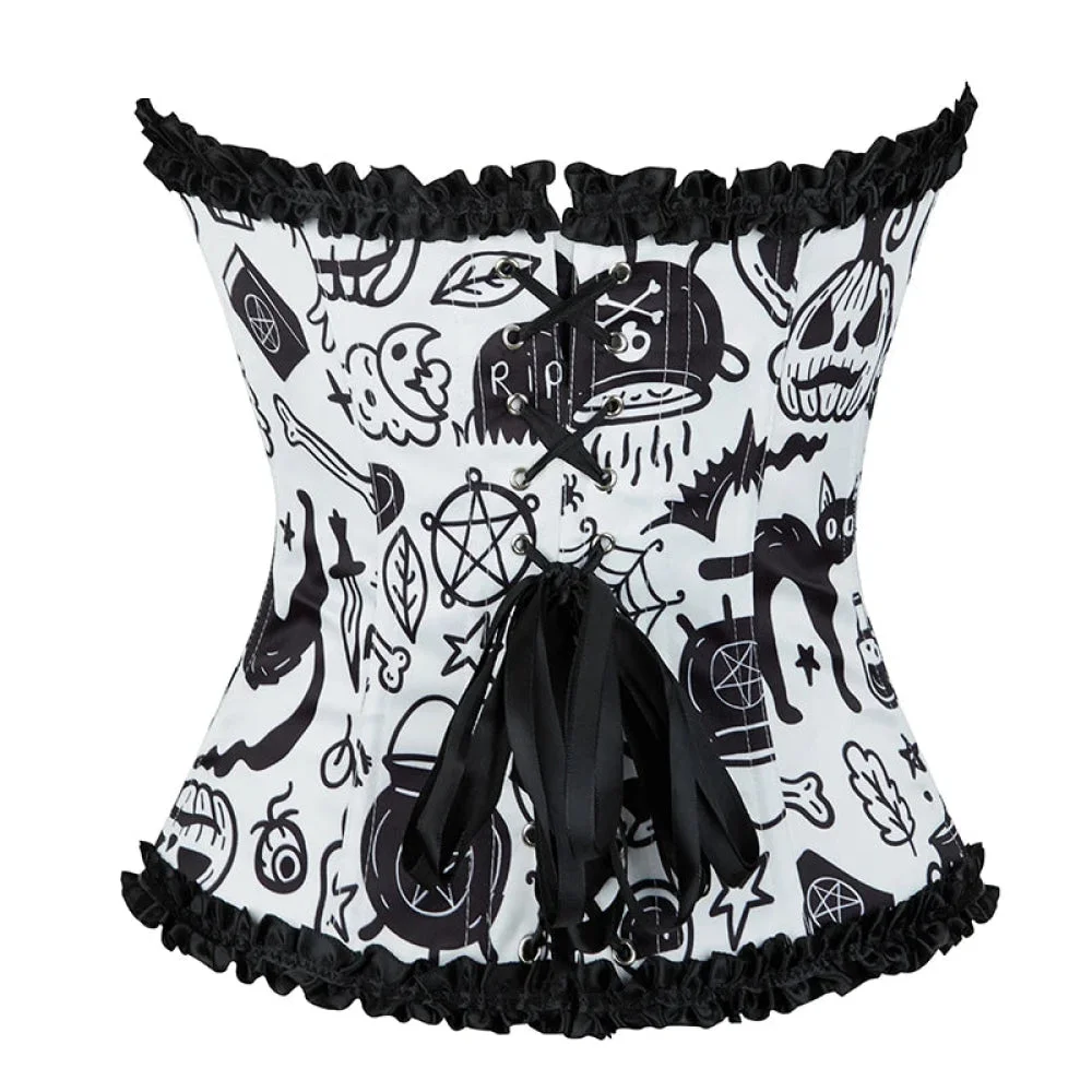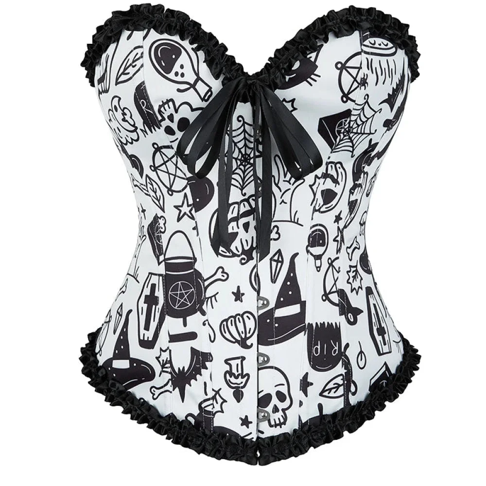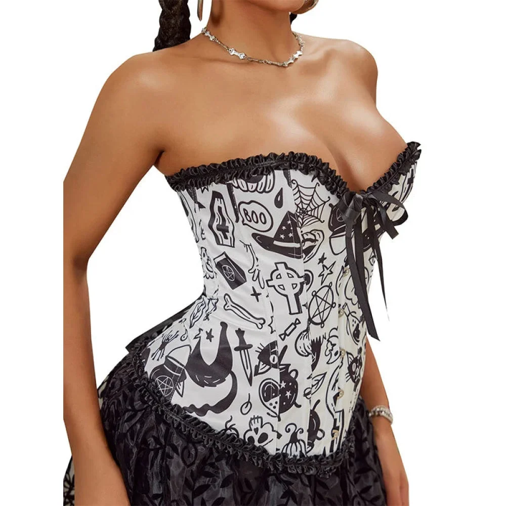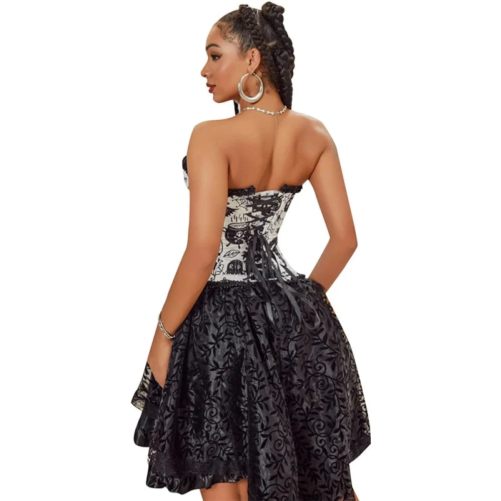 Vintage Floral Crop Top With Puff Sleeves Black / Pink / Green Denim Jeans Fabric Zip Up Corset For Women - Green - Xs