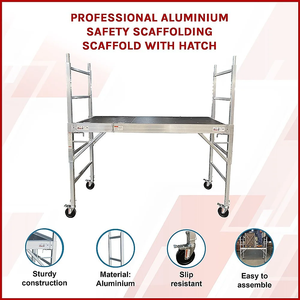 The 4x5 castors makes the aluminum scaffold mobile and easy to move about. The platform is adjustable to suit your task and the high quality Mariner plywood deck features a hatch door providing a secondary way to access or leave the scaffold. The scaffold can stand up to any weather - hot or cold and sunny or rainy. The one-level scaffold is easy to assemble and its foldable design makes storage hassle-free.