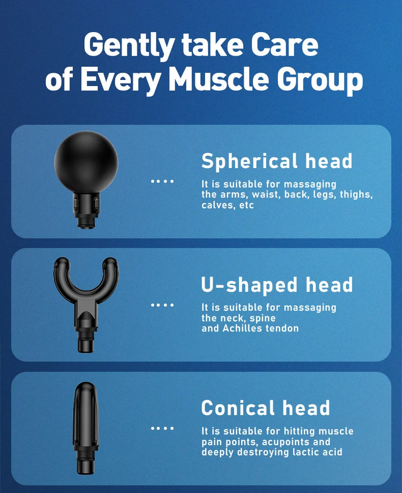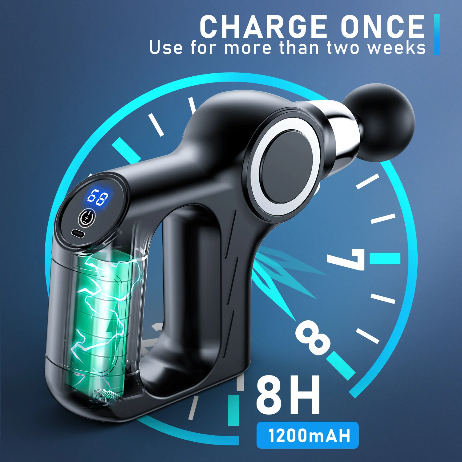 Unleash the power of professional-grade deep tissue massage with this advanced Fascia Gun. Designed to provide comprehensive soothing and care for every muscle group, this massager uses high-frequency percussion to help break down lactic acid, release tension, and restore fascia extensibility. It's powered by a high-speed brushless motor that delivers up to 3200 RPM and a 12mm amplitude for deep muscle activation. With 30 adjustable speed levels controlled via an intuitive LCD touch screen, you can customize your massage from gentle muscle activation to an intense athlete mode. The lightweight and portable design (only 445g) allows for easy one-handed control, making it perfect for post-workout recovery, alleviating muscle soreness, or daily relaxation.
