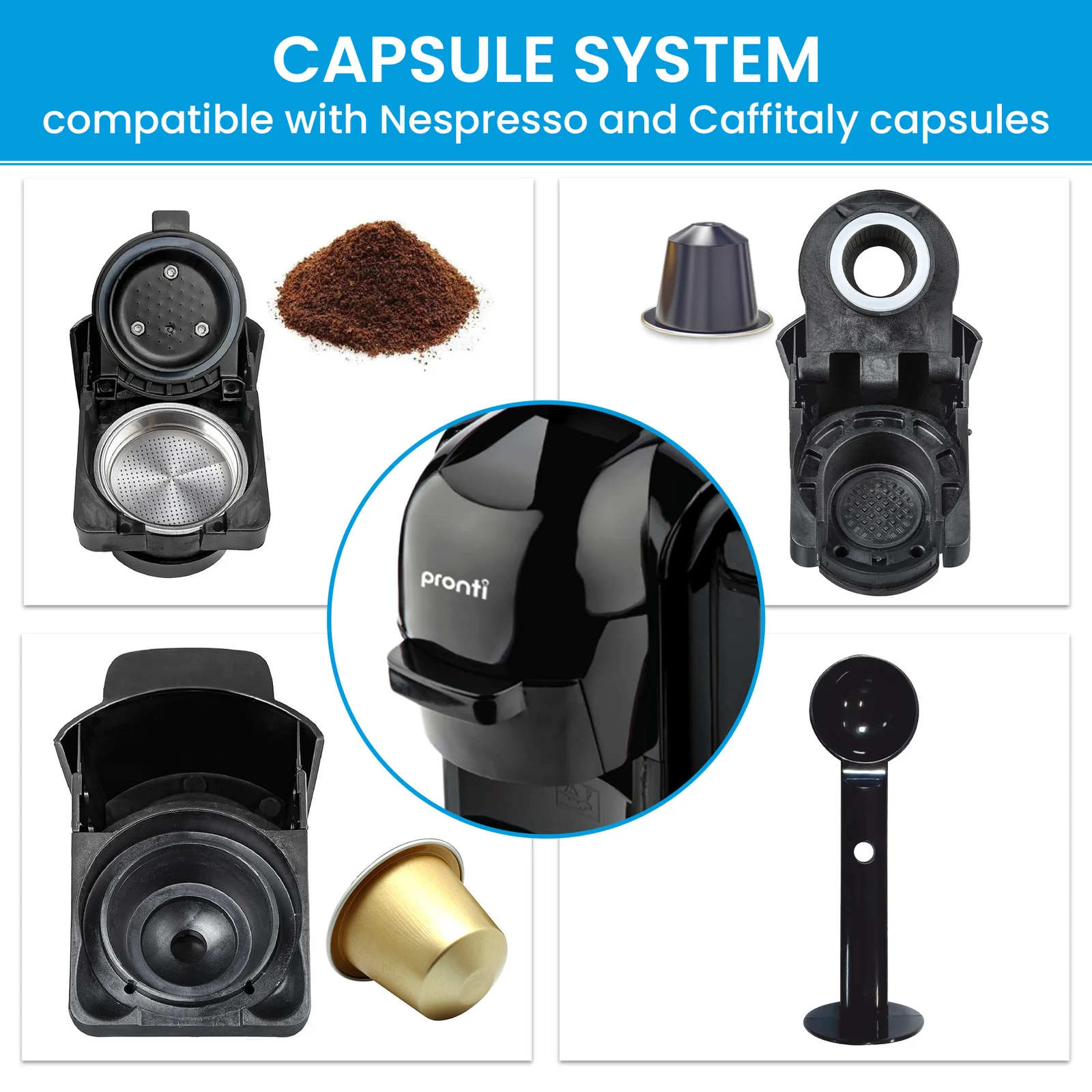 - Coffee Type: Nespresso, Caffitaly, Coffee grounds