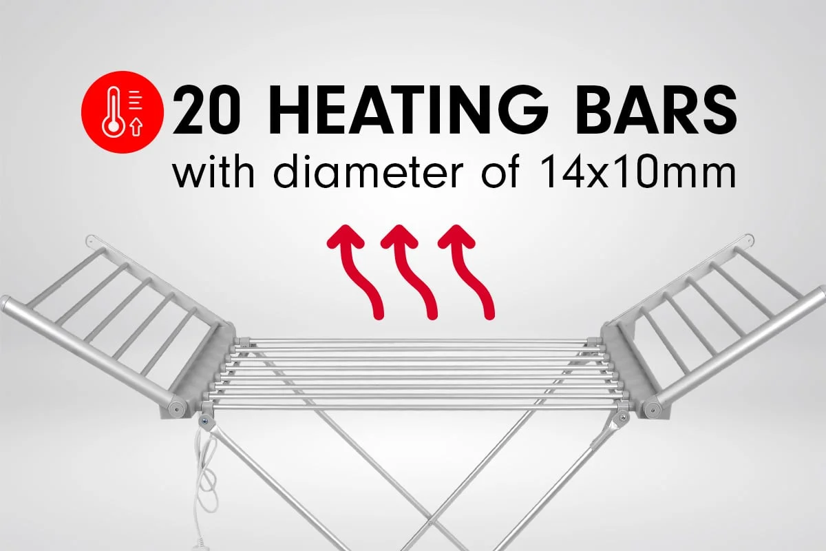 Dry your laundry and towels indoors and cost efficiently with this 230W electric freestanding towel dryer. It's two fold out winged design give plenty of room for your laundry.