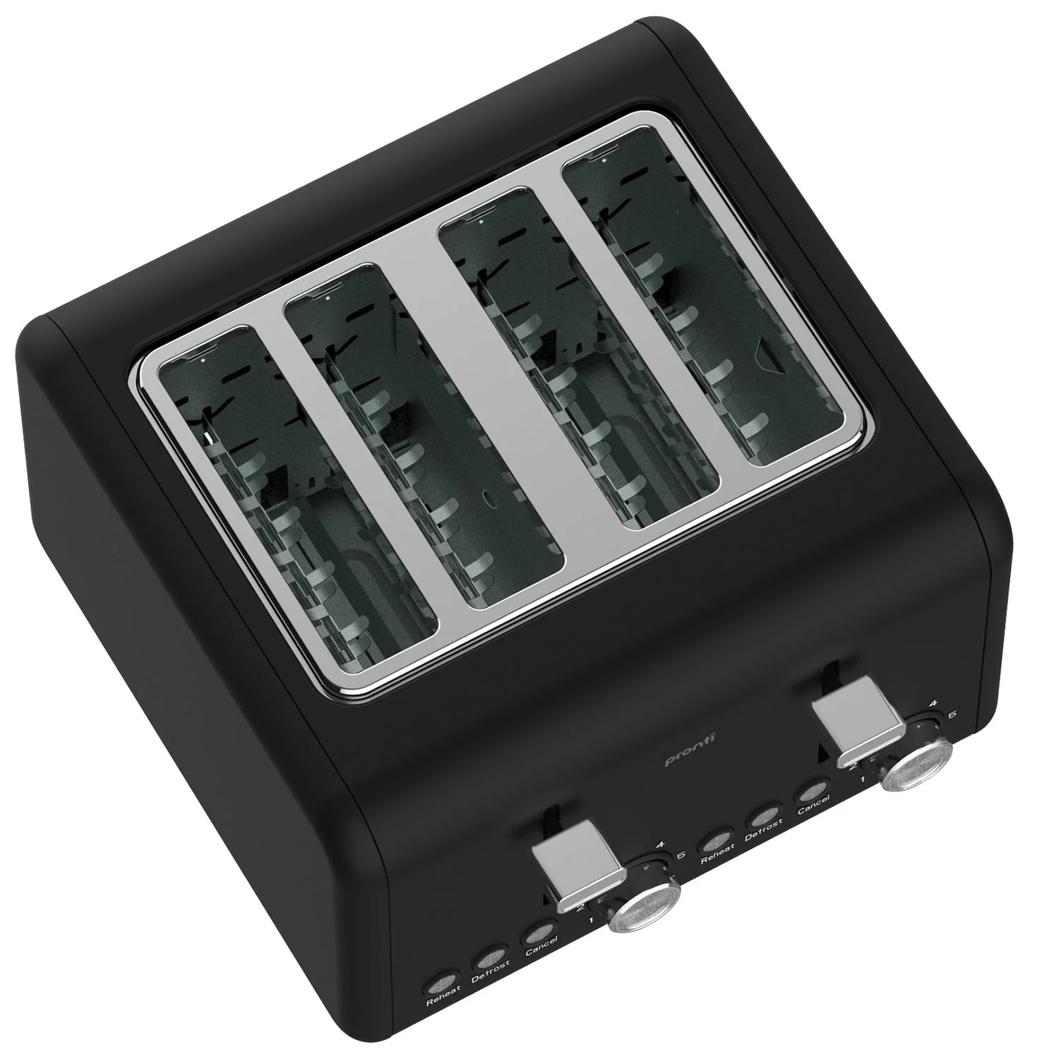 Morning rush or lazy weekend, this toaster keeps pace with your day. The Pronti 4-Slice Toaster features a dual control design for flexible family toasting, six browning levels for perfect shade control and reheat, defrost and cancel functions for everyday convenience. A high lift lever makes small slices easy to grab, while the removable crumb tray and automatic shut off keep things clean and safe. A practical kitchen essential that brings ease and consistency to every slice.