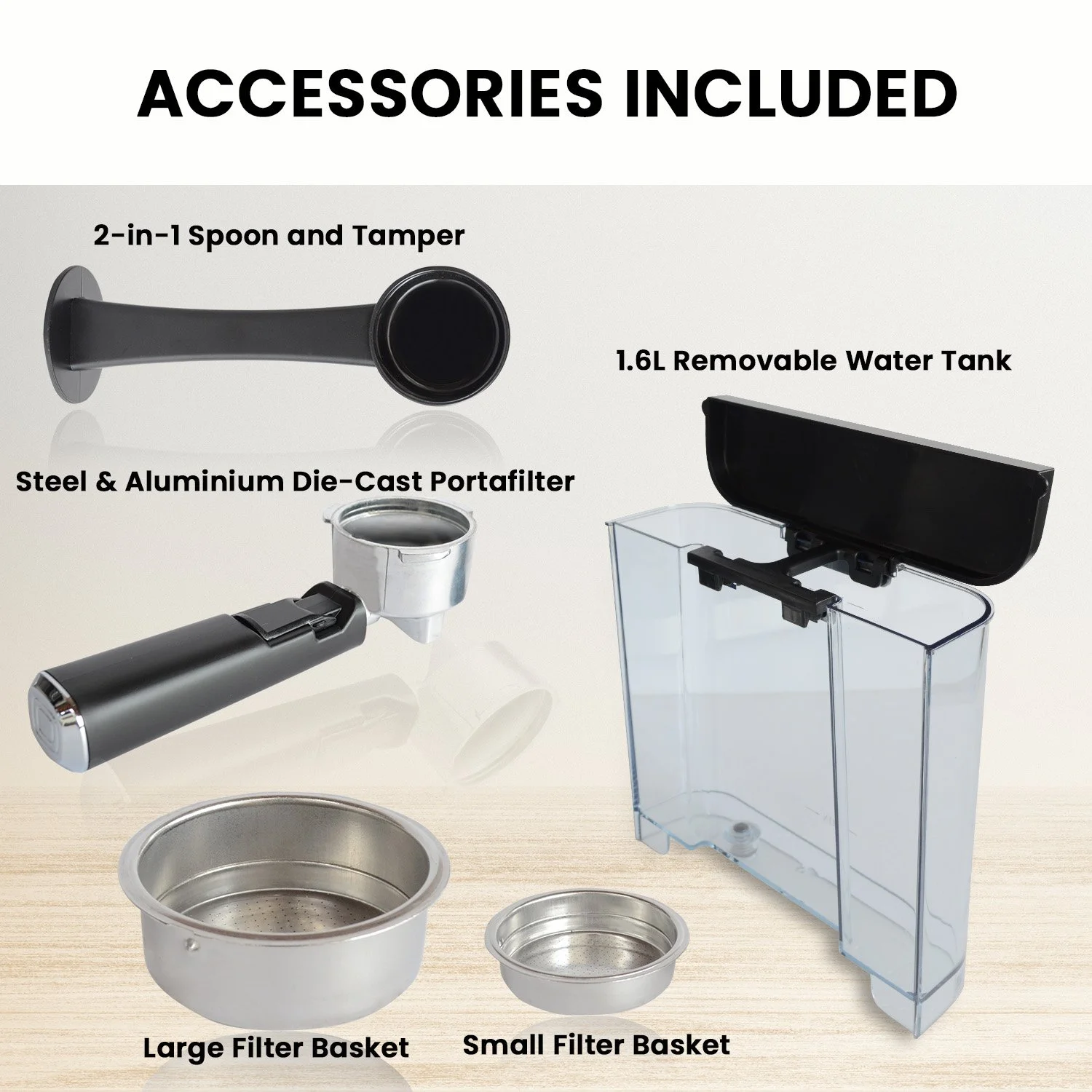 • Espresso Machine Water Tank Capacity: 1.6 Litres