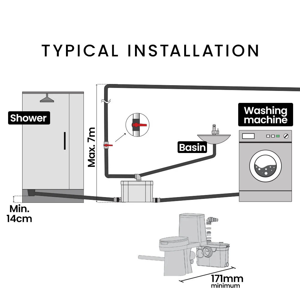 Save money on expensive plumbing work and avoid the headache of relocating sewer lines or creating complex drainage systems. The Macerator Pump simplifies the process, putting your budget back in your control.