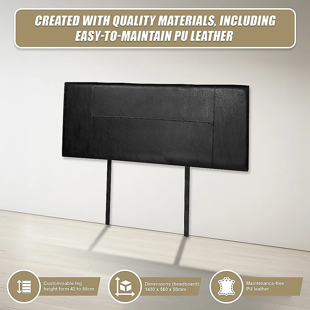 This headboard for standard Double-sized bed frames is created with quality materials, including easy-to-maintain PU leather that will maintain its sophisticated look for many years to come. This particular model comes with elegant stitching accents that provide just the right level of understated pop. A neutral black will blend seamlessly with a wide variety of bed frames and other bedroom furniture.