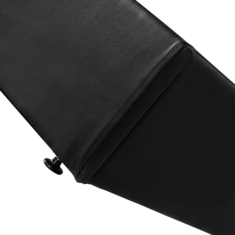 Designed for a standard-sized King mattress, this bed ensemble frame features quality craftsmanship and the finest materials. With the brilliant sheen of easy-to-maintain black PU leather and elegant stitching accents, this bed ensemble frame fits equally well with both contemporary and classic decórs.