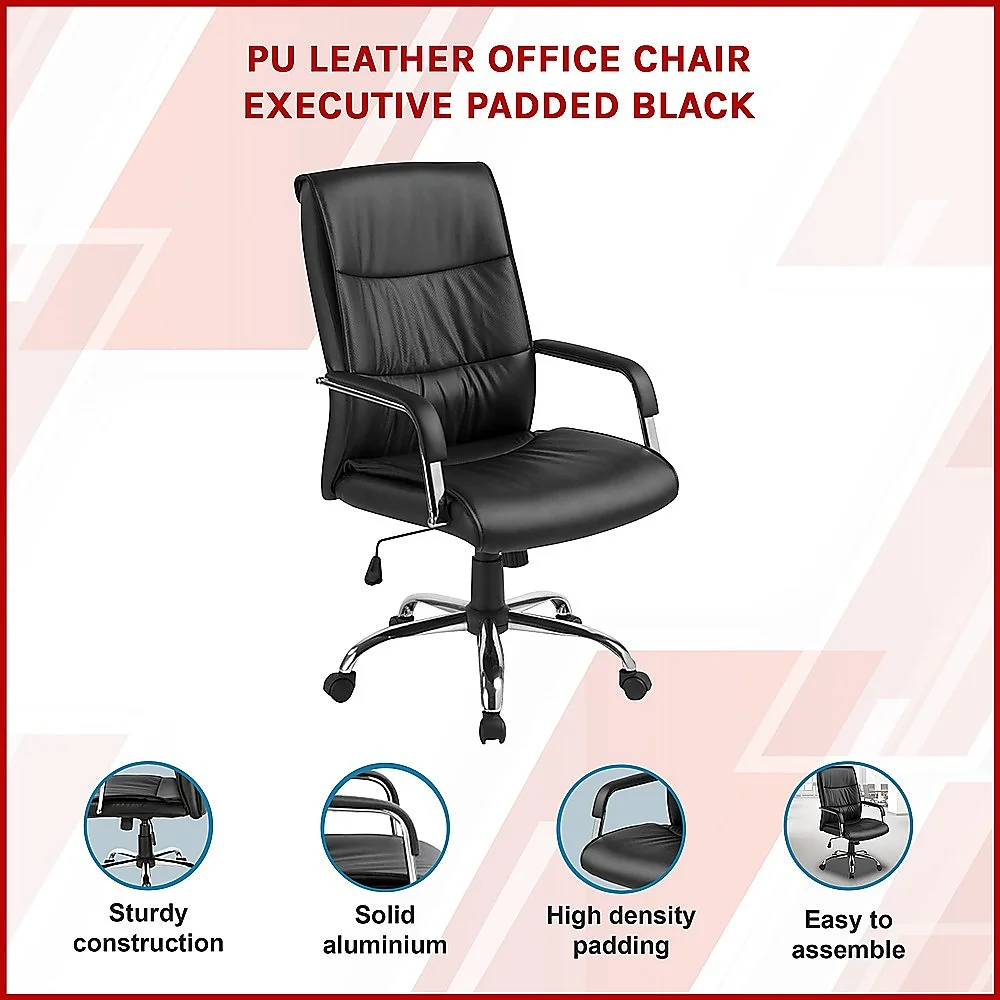 Crafted from premium black PU leather, this chair offers a sleek, professional look that's easy to clean and maintain. The ergonomic design with built-in lumbar support ensures proper posture and helps relieve lower back strain, while the double-layer padding delivers plush comfort for your seat and arms.