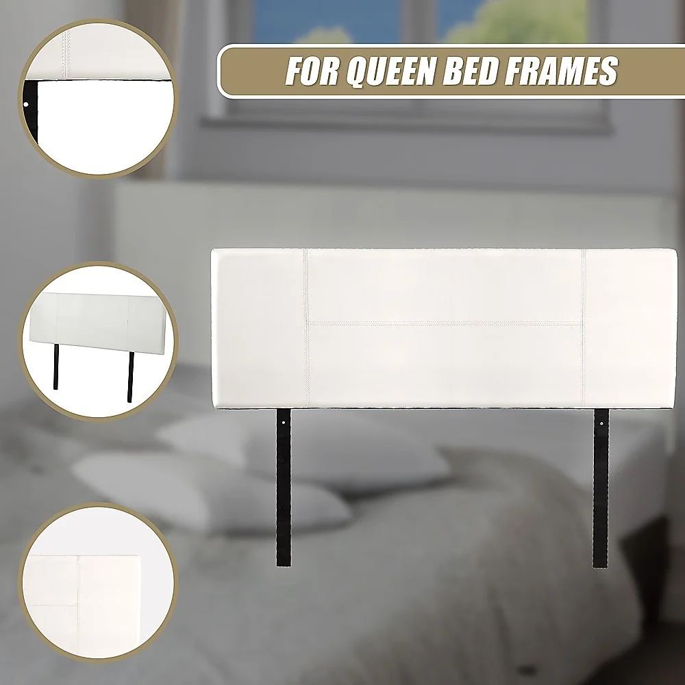 This headboard for standard Queen-sized bed frames is created with quality materials, including easy-to-maintain PU leather that will maintain its sophisticated look for many years to come. This particular model comes with elegant stitching accents that provide just the right level of understated pop. A neutral white will blend seamlessly with a wide variety of bed frames and other bedroom furniture.