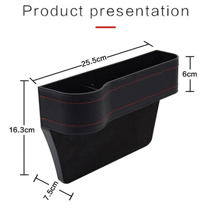 The Car Seat Gap Slit Storage Organiser PU Leather Box Phone Bottle Holder is a great addition to any car interior. Made from high-quality PU leather, this storage box is designed to fit in the gap between the front seats of most cars. The storage box is perfect for storing your phone, wallet, keys, sunglasses, and other small items that tend to get lost in the car. It also features a cup holder and can hold bottles of various sizes. The storage box is easy to install and remove, and the base of the box is non-slip, ensuring that it stays in place while driving. Keep your car organised and clutter-free with the Car Seat Gap Slit Storage Organiser PU Leather Box Phone Bottle Holder.
