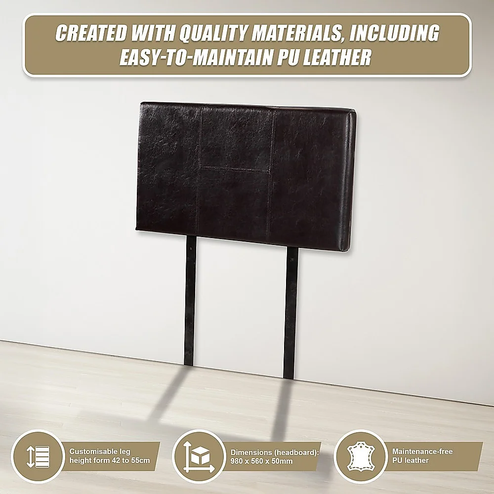 This headboard for standard Single-sized bed frames is created with quality materials, including easy-to-maintain PU leather that will maintain its sophisticated look for many years to come. This particular model comes with elegant stitching accents that provide just the right level of understated pop. A neutral brown will blend seamlessly with a wide variety of bed frames and other bedroom furniture.