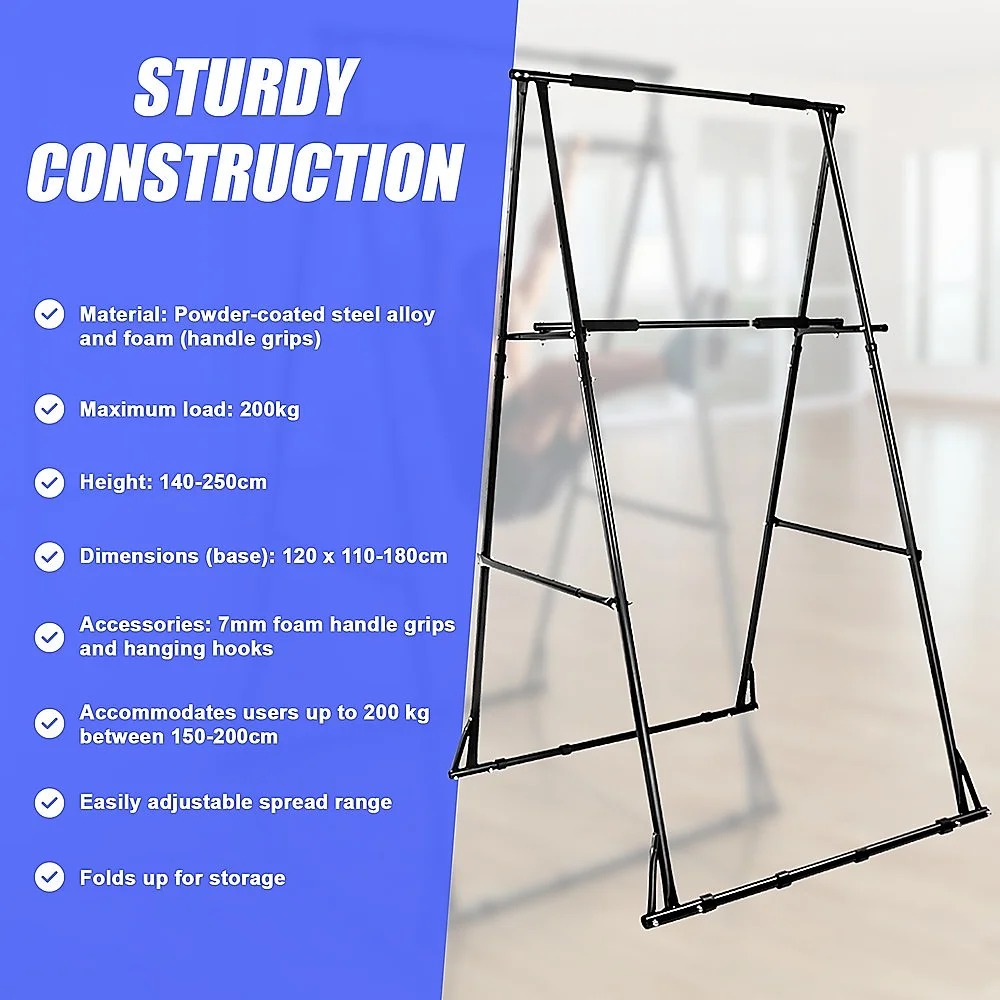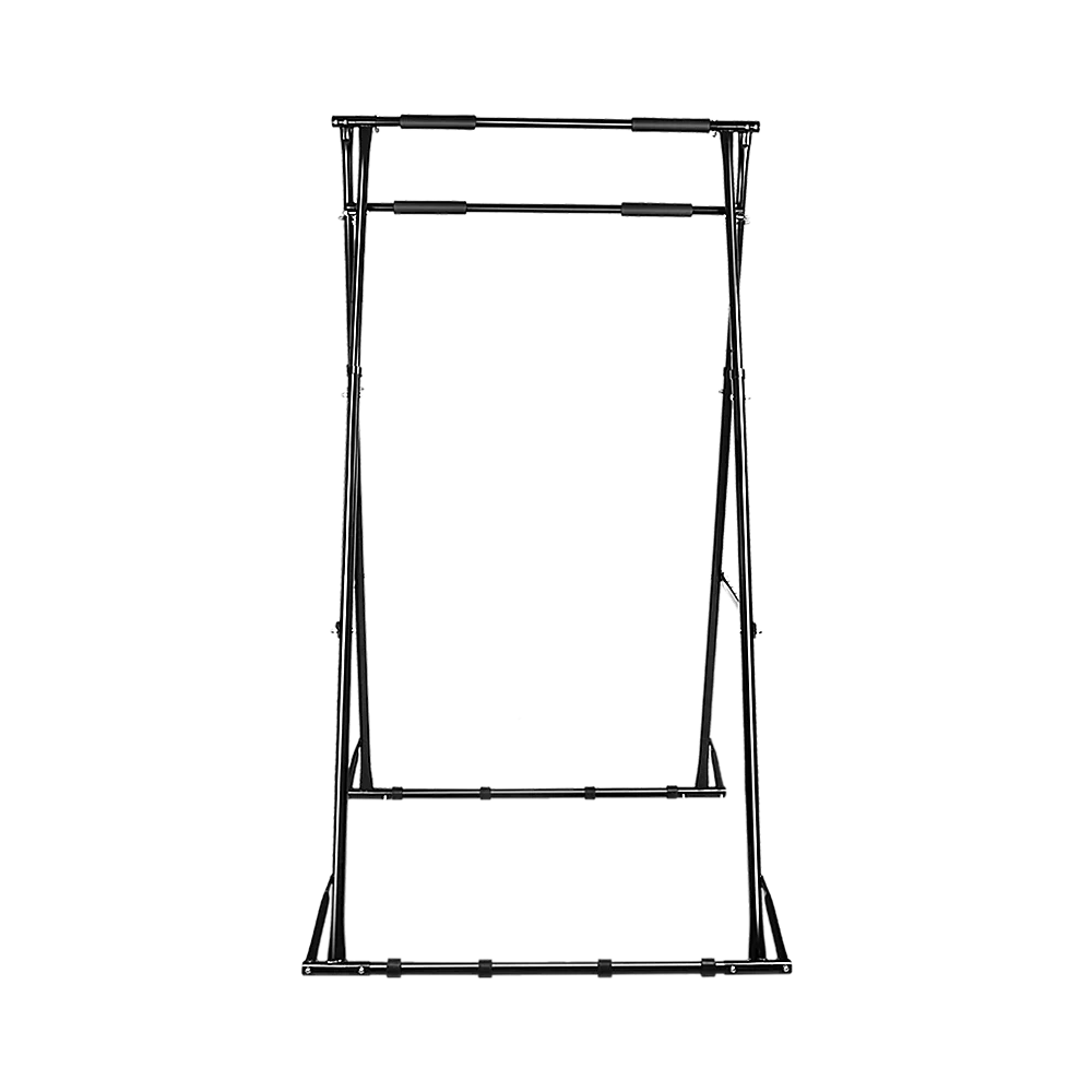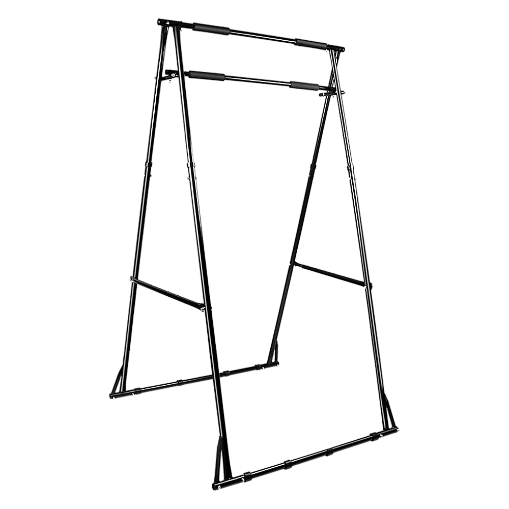 Its free-standing design allows you to move it easily around your house or even take it outside when weather permits. Unlike using a wall- or door-mounted pull-up apparatus, you can fold it up and stash it out of sight when guests arrive. It accommodates full body swings no knee bending needed to keep your feet off the ground. Soft, cushioned foam handle grips are easy on your hands, even during the most rigorous workout. Sturdy support bars reduce wobble by an incredible 92 per cent.
