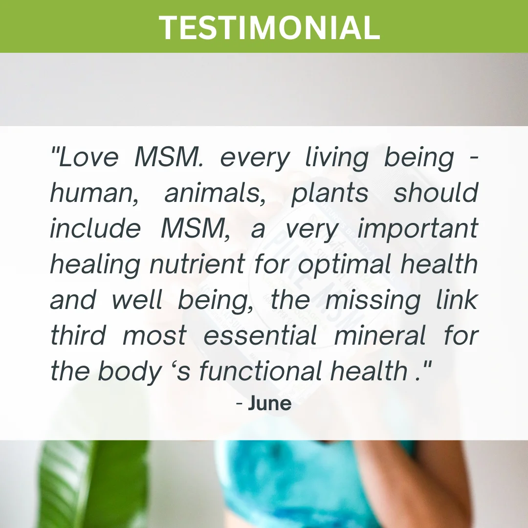 MSM (Methyl Sulfonyl Methane) is a form of Sulphur which contains collagen and keratin.