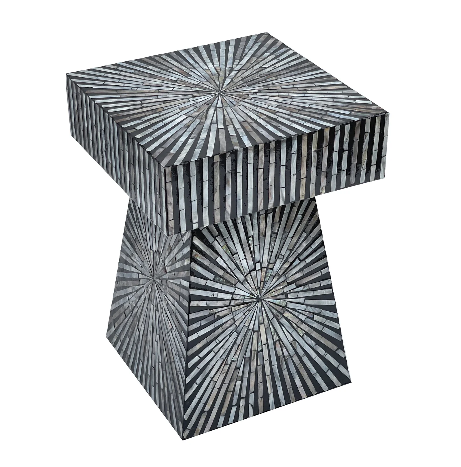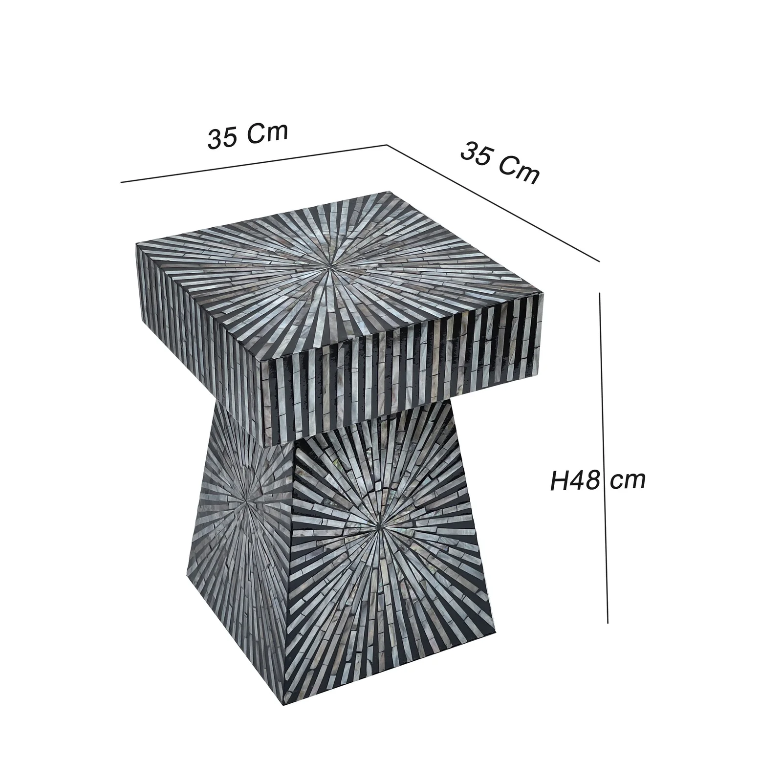 PYRAMID MOTHER OF PEARL HAND MADE SIDE TABLE Add a touch of elegance to your home with our handcrafted Pyramid Mother of Pearl Side Table. The intricate design and luxurious material bring a sense of sophistication and style to any room. You'll love the way it catches the light and adds a touch of natural beauty to your living space. Whether you're using it as a statement piece or a functional addition, our side table is sure to impress and elevate any home decor. Experience the quality and craftsmanship for yourself and transform your living space with our Pyramid Mother of Pearl Side Table!