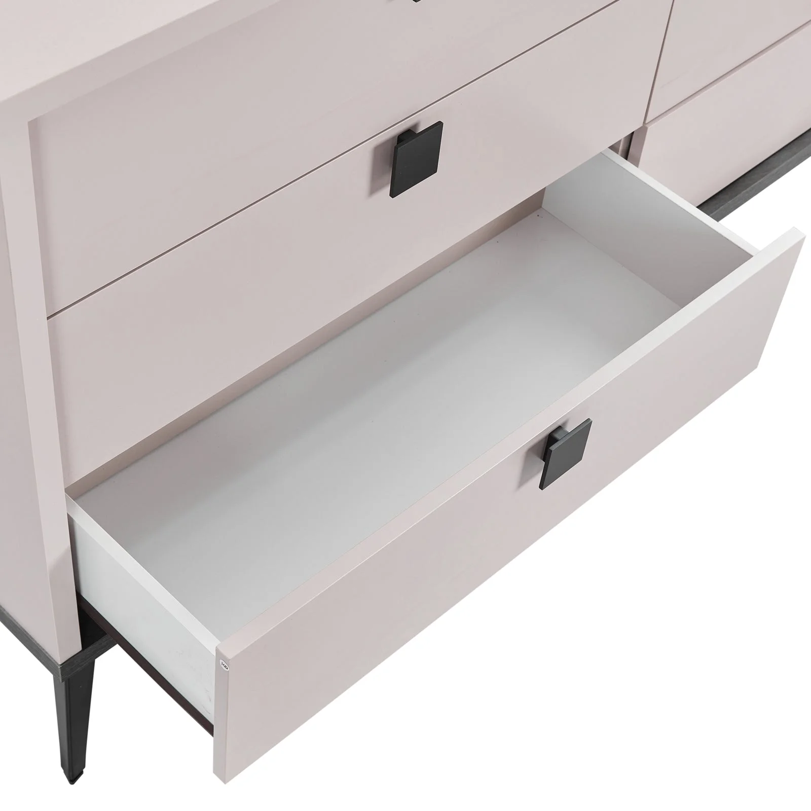 Each piece is built with MDF for durability, and the metal legs provide firm support. The melamine finish ensures a smooth texture and easy maintenance.