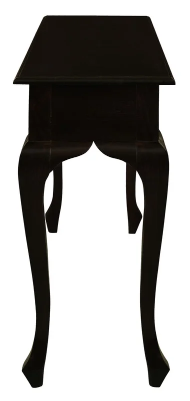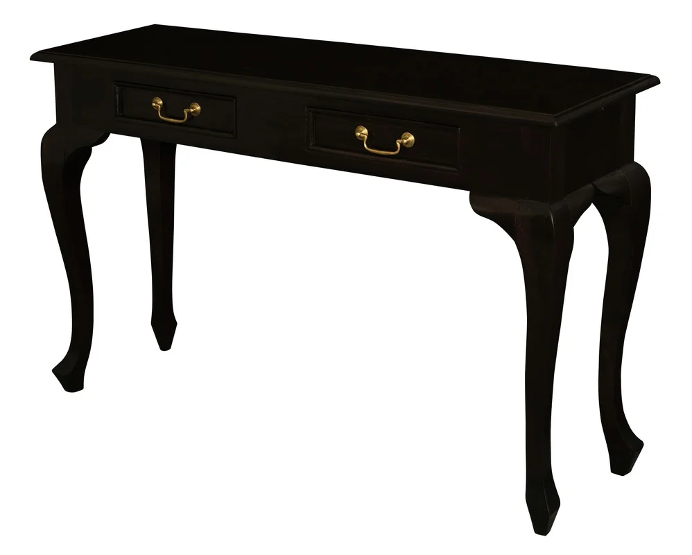 Crafted from solid mahogany, this console table brings the hallmarks of Queen Anne designcurved cabriole legs and hand-carved detailsinto a versatile, durable piece. A rich dark finish highlights the timber grain, while two smooth-glide drawers with brass handles keep entryway or living room essentials neatly stored. Minimal assembly means its ready to use quickly.