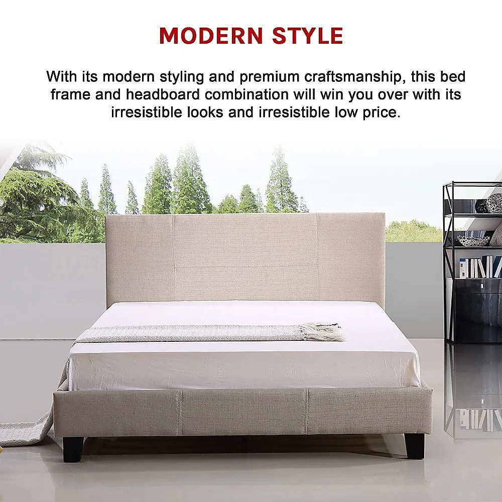 We proudly present an exceptional choice for bedroom style and comfort with the Palermo Queen Bed Frame with Linen Fabric. With its modern styling and premium craftsmanship, this bed frame and headboard combination will win you over with its irresistible looks and irresistible low price.
