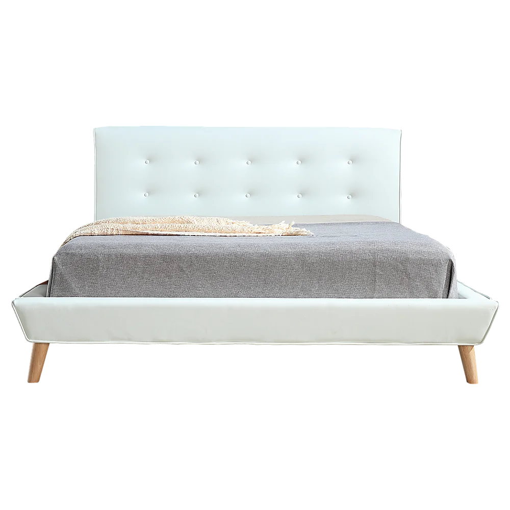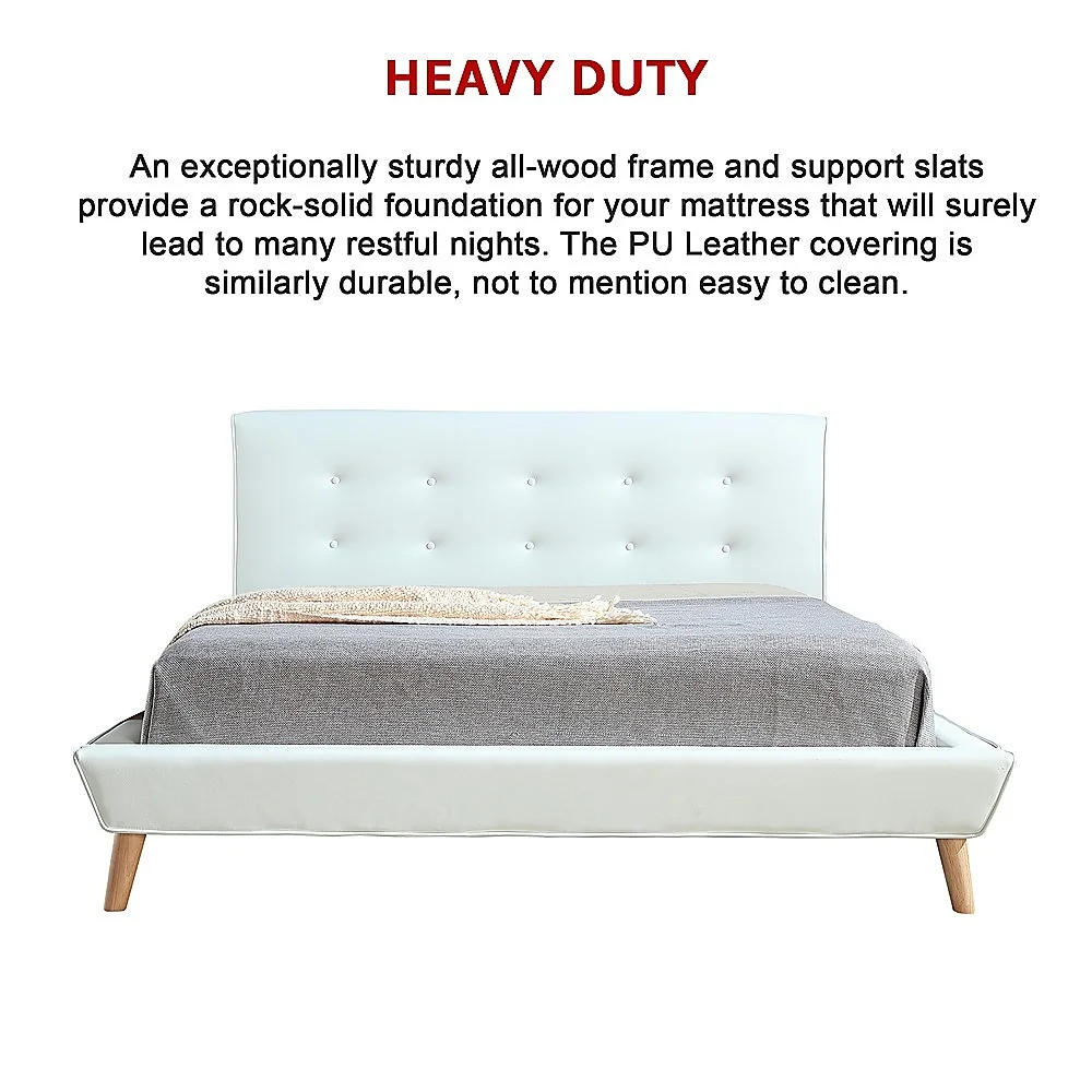 Features of the Palermo PU Leather Queen Bed Frame and Button Tufted Headboard — White: