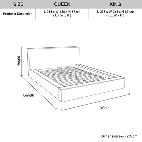Ralph bed has KD slats as the bed base. These slats will make the bed stronger and enhance its endurance. Again, strong metal joint firmly joins the slats with the bed frame so that there remains relatively less chance of breaking down.
