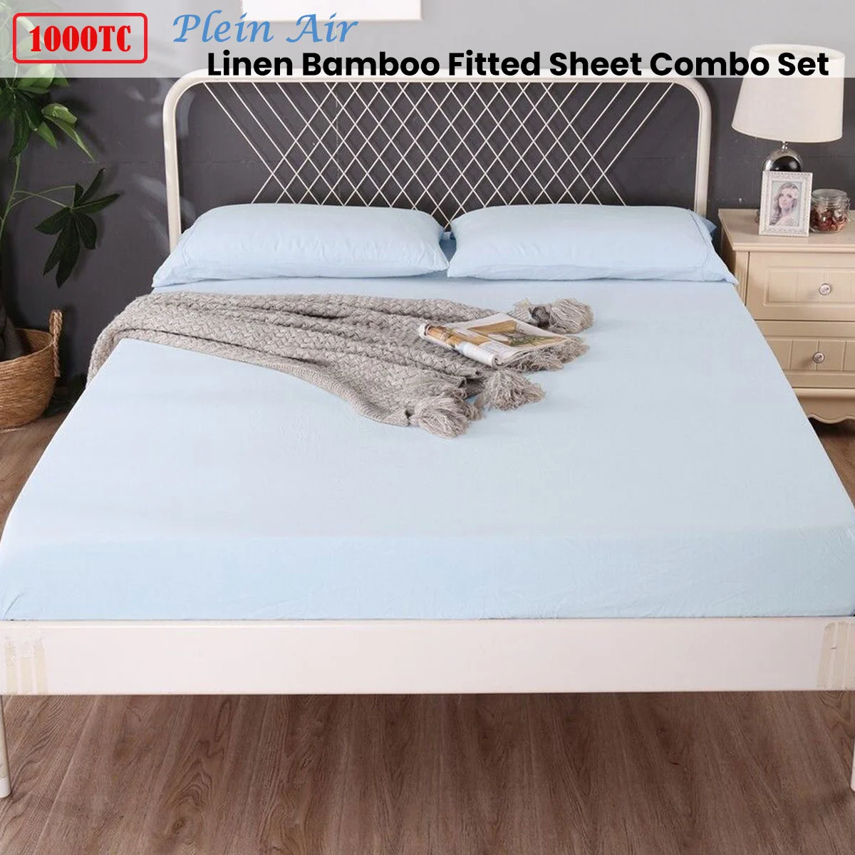 1000TC Bamboo Linen Blend Fitted Sheet Combo Set by Ramesses. Linen regulates heat, naturally. When you receive your linen, you will notice that it has a cool, dry, textured feeling and feels amazing on your skin - even in humid weather. This is due to its natural heat regulating properties, allowing you to stay warm in Winter, and cool in the very peak of Summer. French Linen blend in bamboo, the ideal fibre for bedding. These natural fibers are antibacterial and hypoallergenic, more than look pretty, and its our first choice for anyone with sensitive skin. Each piece is lovingly hemstitched with high attention to detail. Genuinely stonewashed linen so your sheets are soft and ready to sleep on.