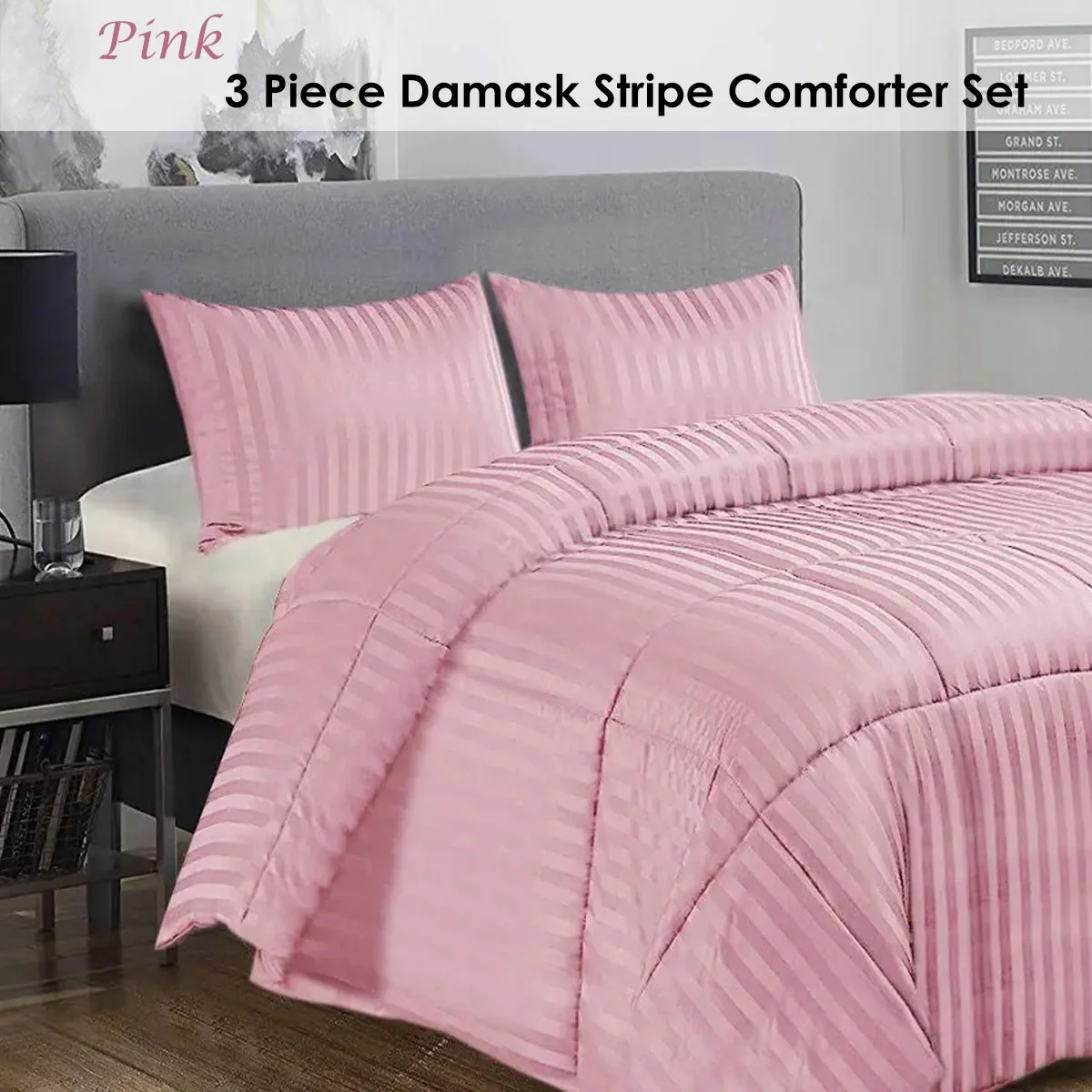 The 3 Piece Damask Stripe Comforter Set Pink by Ramesses is perfect bedding set for a feminine bedroom style that will add a visual interest. This comforter set offers softness and comfort for year-round use. It features a lovely quilted stripes design in chic colour tone that will add a touch of romantic vibe. It is made from ultra-soft and comfortable microfiber fabric and polyester filling with long lasting quality and easy care properties.