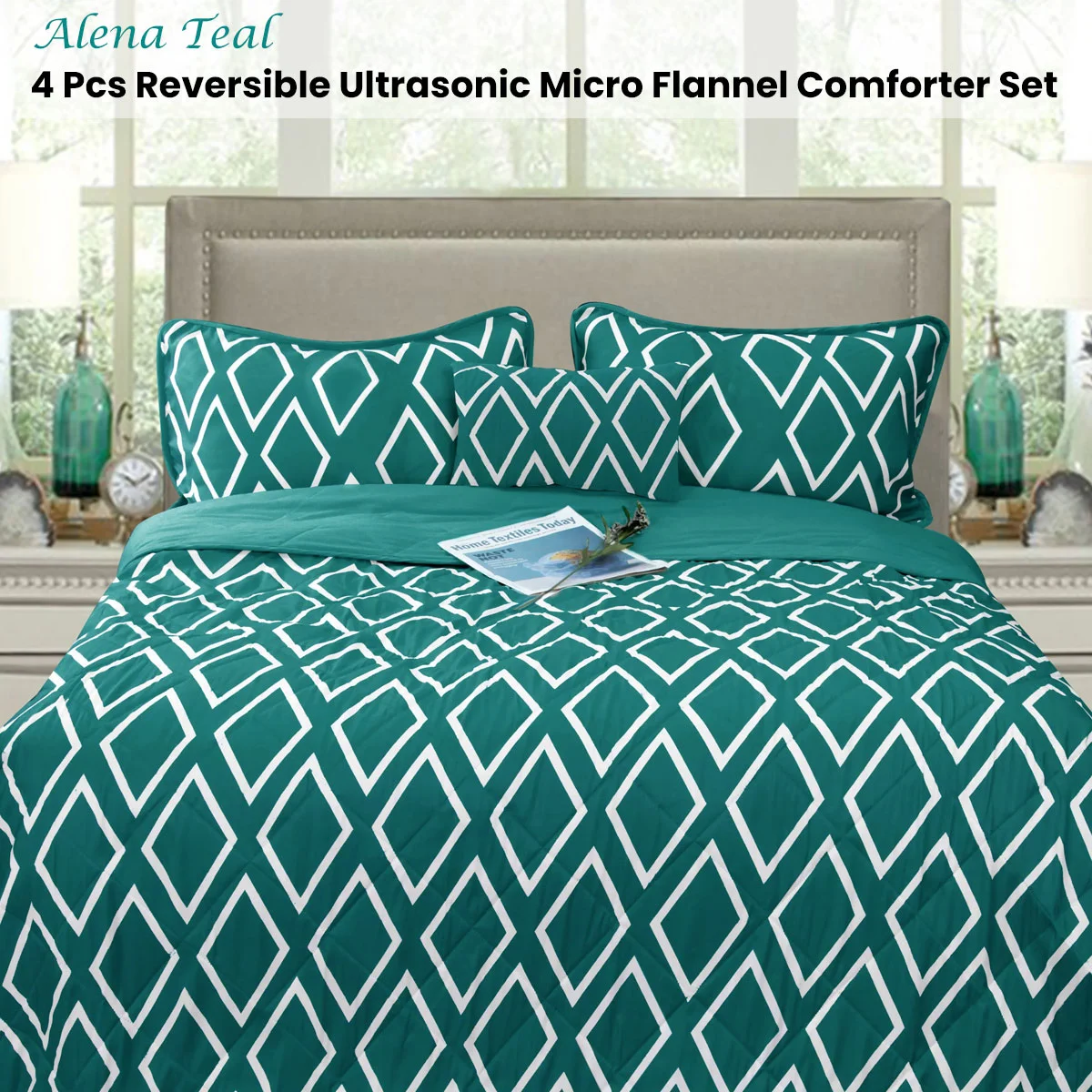 Bring a new touch to your bedroom decor with this Alena Teal 4 Pcs Reversible Ultrasonic Micro Flannel Comforter Set by Ramesses. Made from soft, durable, and shrinkage-free microfiber yarns in teal and white hues. Serve yourself with better sleep every single night and wake up each morning with this Premium Hotel Collection Comforter Set. Premium design with high quality craftsmanship ensures the added comfort and super soft feel giving you the best sleep experience.